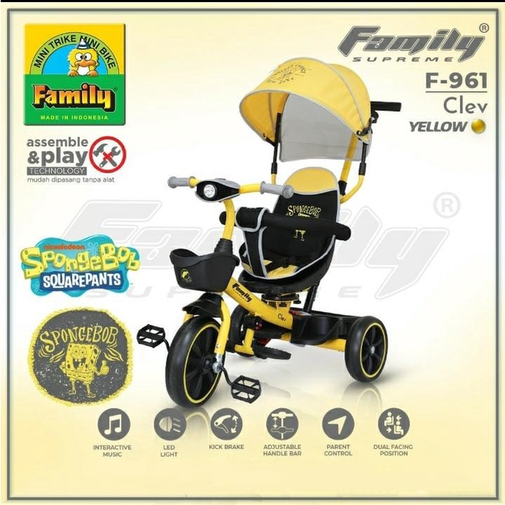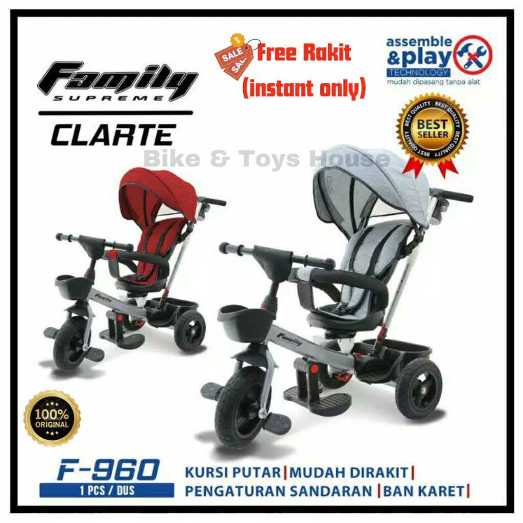 FREE BATTERY - Sepeda Anak Family Roda Tiga Supreme Clarte F-960 / 962 / 961
