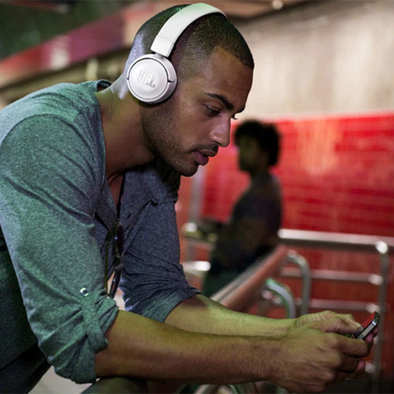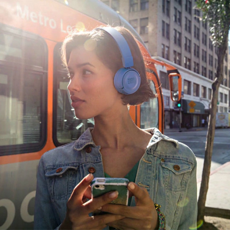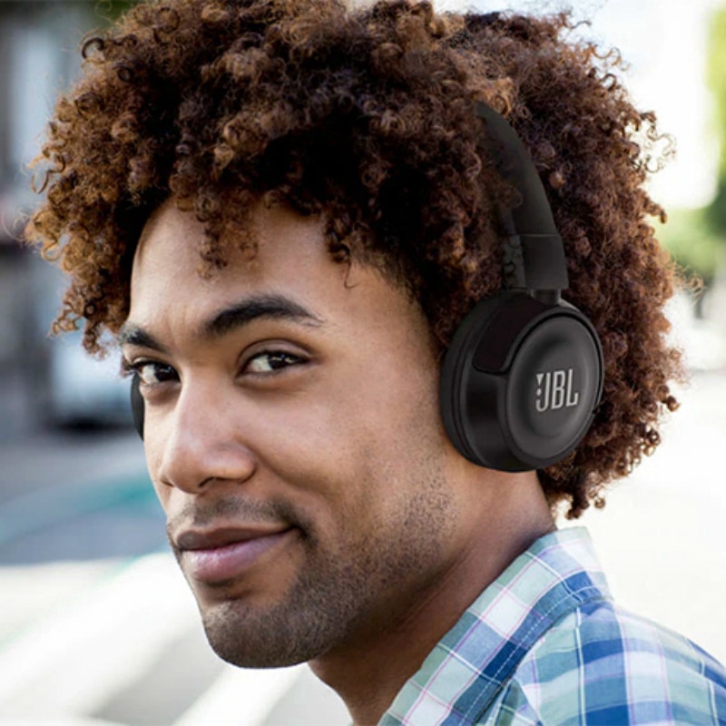Headset nirkabel Bluetooth JBL T450BT dengan panggilan pembatalan bising mikrofon dan kontrol volume