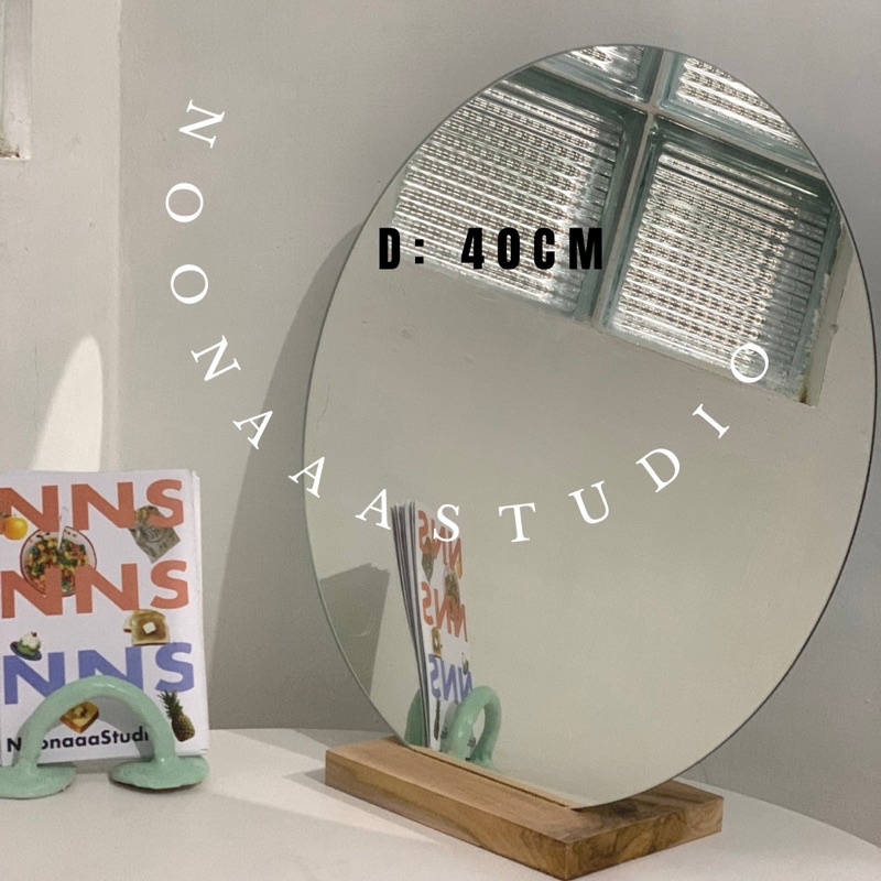 Cermin DINDING Lingkaran 40 cm + penyangga kayu / Cermin Aesthetic /cermin bulat / murah/cermin dinding