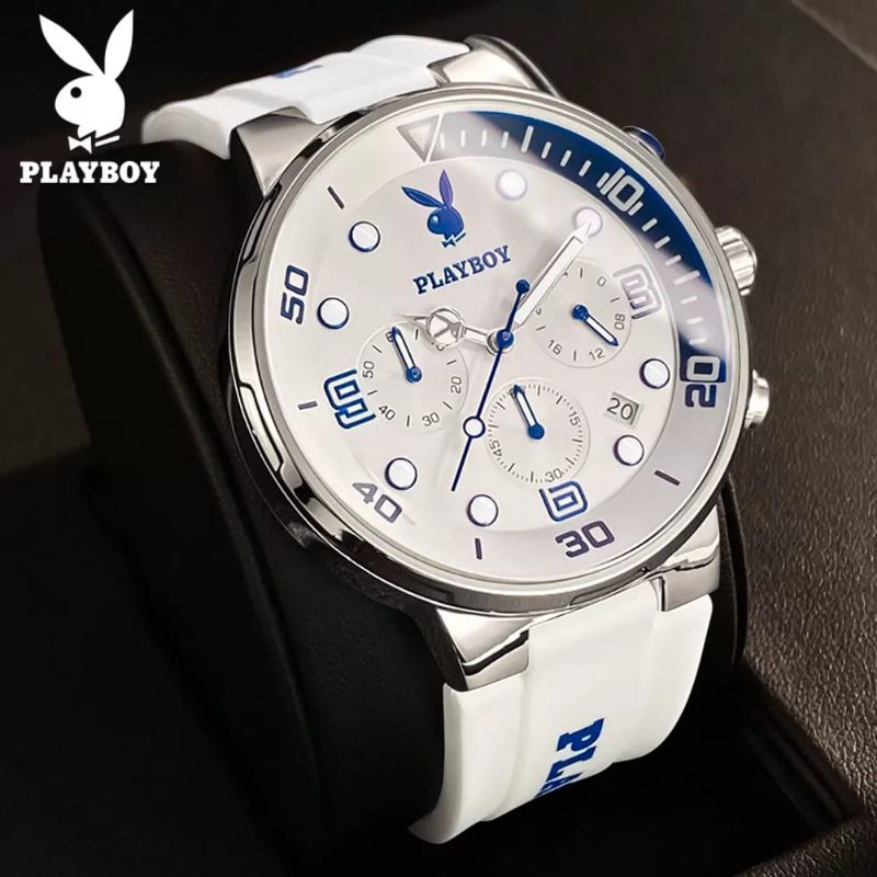 JAM TANGAN PLAYBOY PRIA ANTI AIR ORIGINAL QUARTZ KALENDER LUMINOUS MULTIFUNGSI NYAMAN TALI SILIKON WATCH 3036