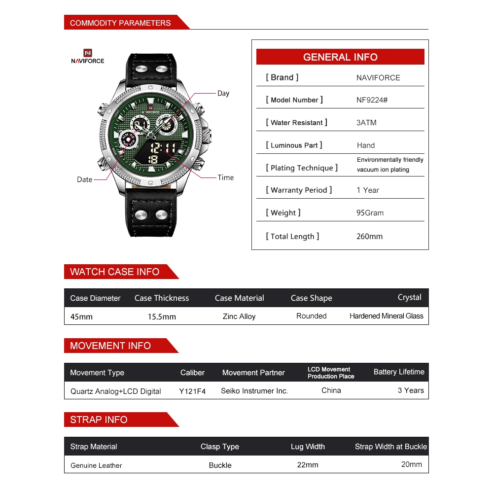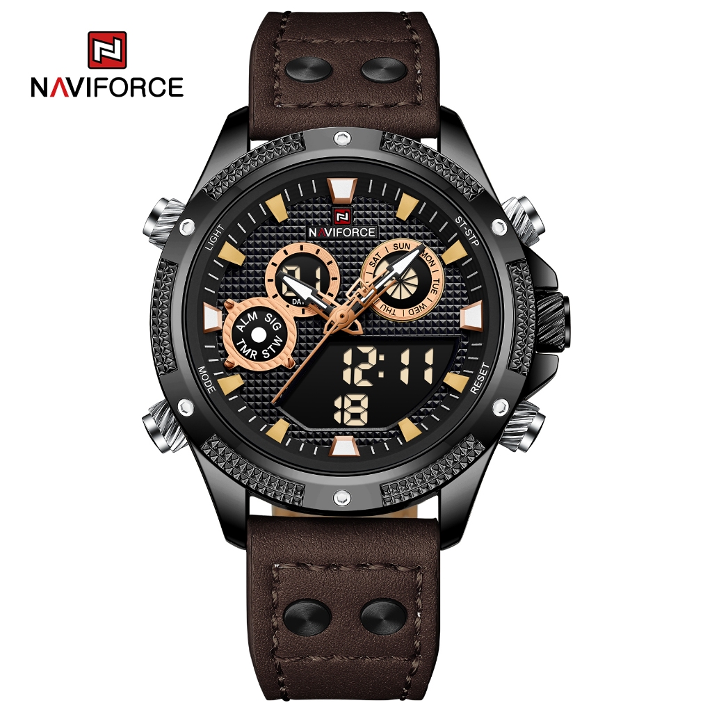 naviforce 9224 kulit jam tangan pria dualtime - watches