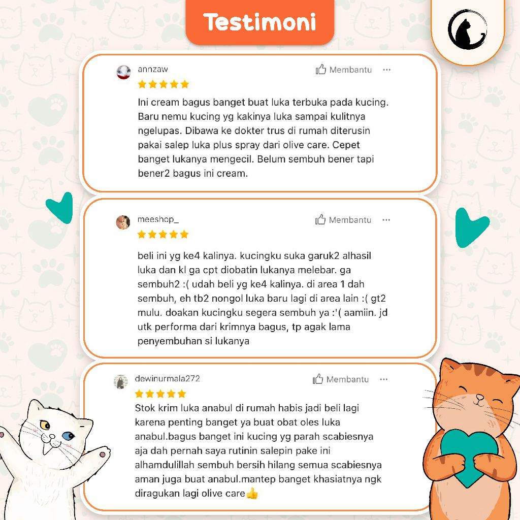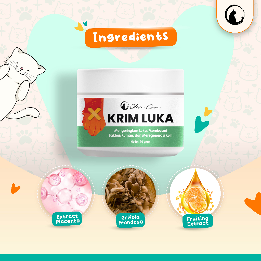 Olive Care Salep Krim Kucing KRIM LUKA untuk Kulit Luka Basah & Kering, Luka Berdarah, Koreng, Cegah Infeksi dan Regenerasi Kulit