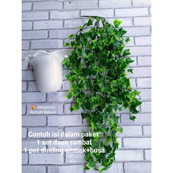 Rambat daun kwaci artificial dengan pot dinding ombak+busa