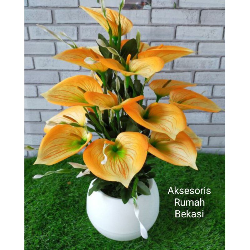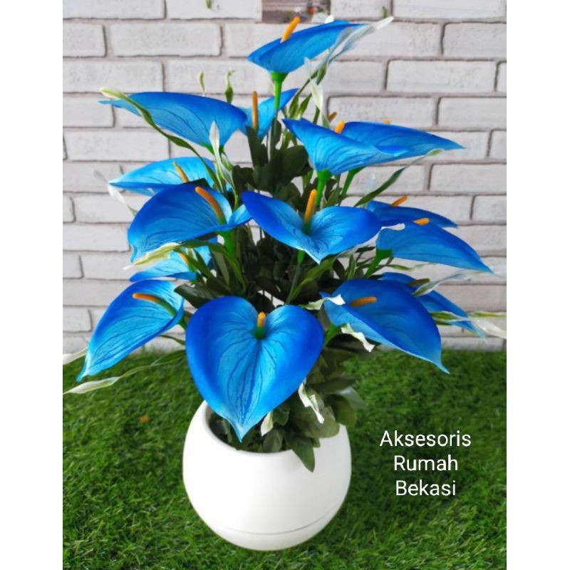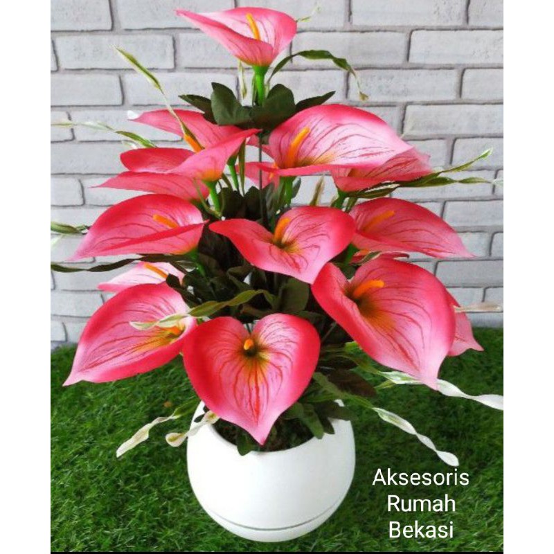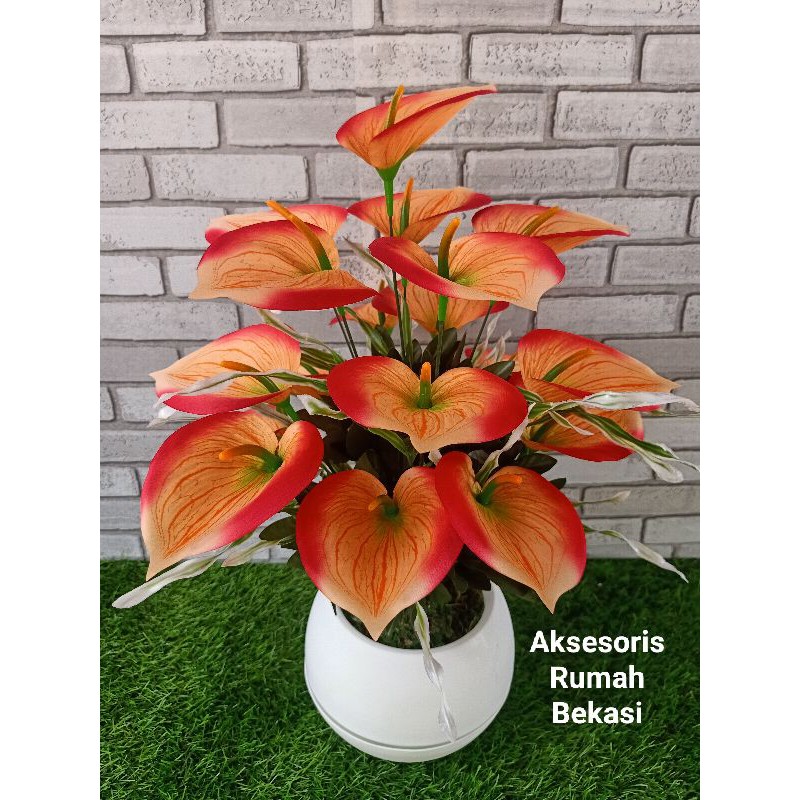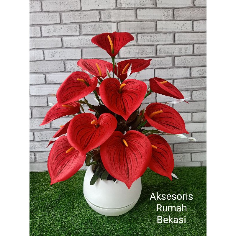 set bunga sudut anthurium / bunga Lily / bunga Aron dengan pot bola jumbo