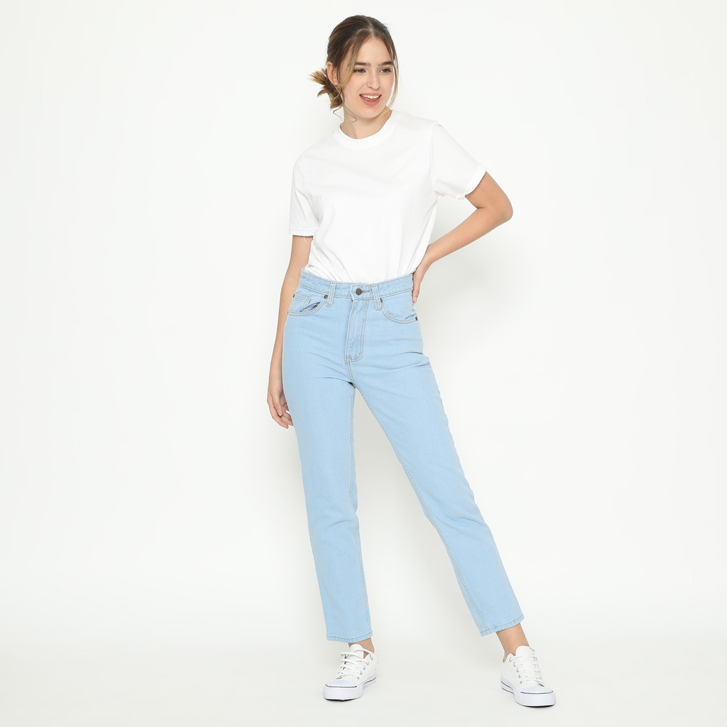 ESROCTE Isla Pants | Celana Boyfriend Jeans High-Waist Wanita –Navy Hitam Biru Muda– 26–38