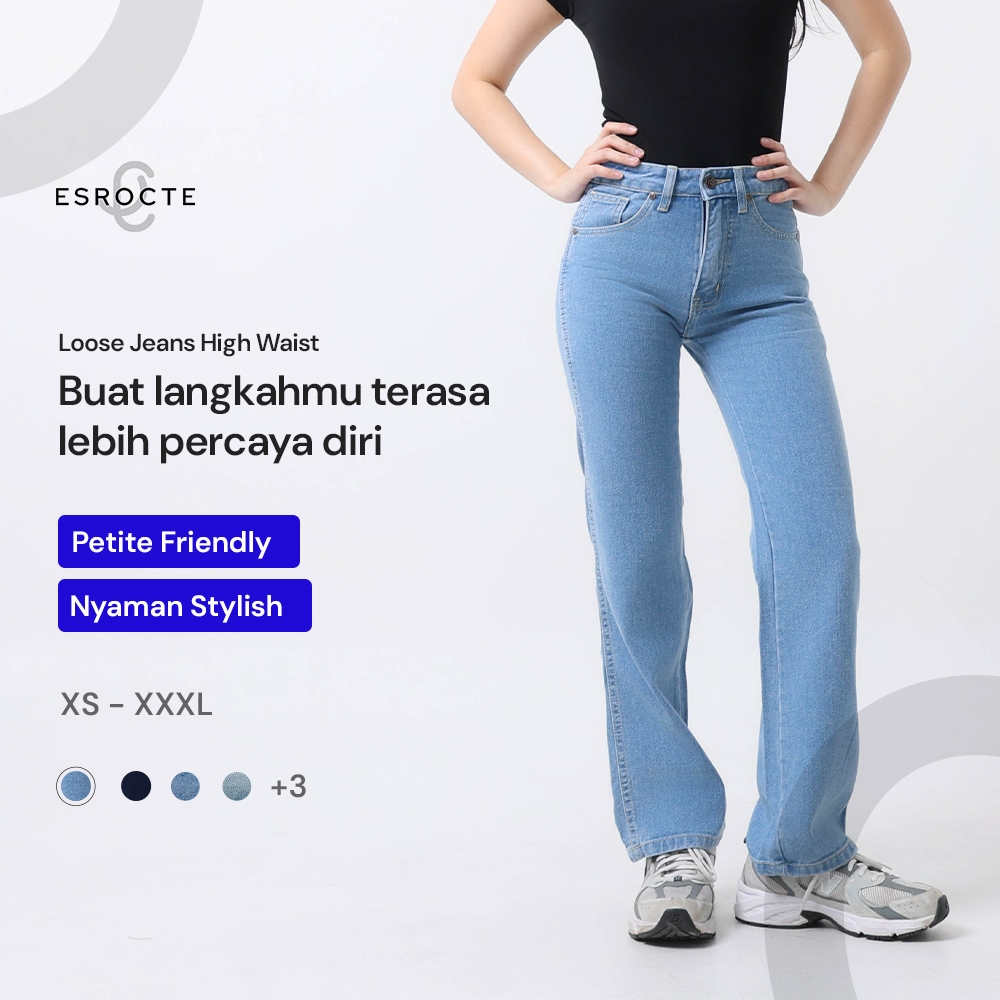 ESROCTE Eira Pants | Celana Loose Jeans High-Waist Wanita –Biru Folder– 26–38 (NEW SIZE)