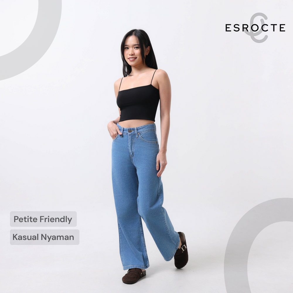 ESROCTE Naura Pants | Celana Kulot Jeans High-Waist Wanita –Biru Folder– 26–38 (NEW SIZE)