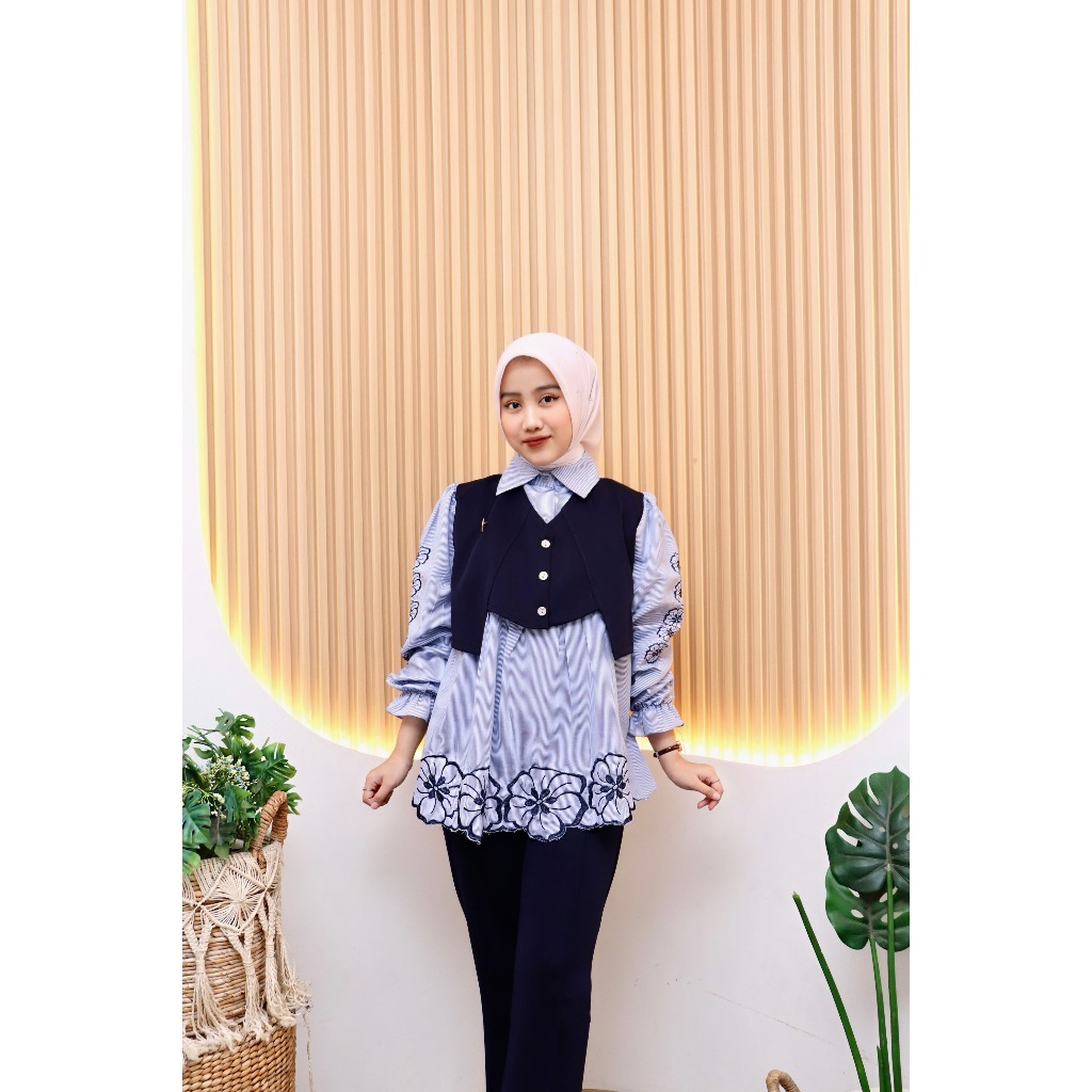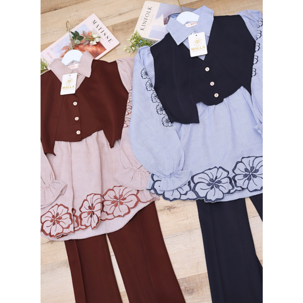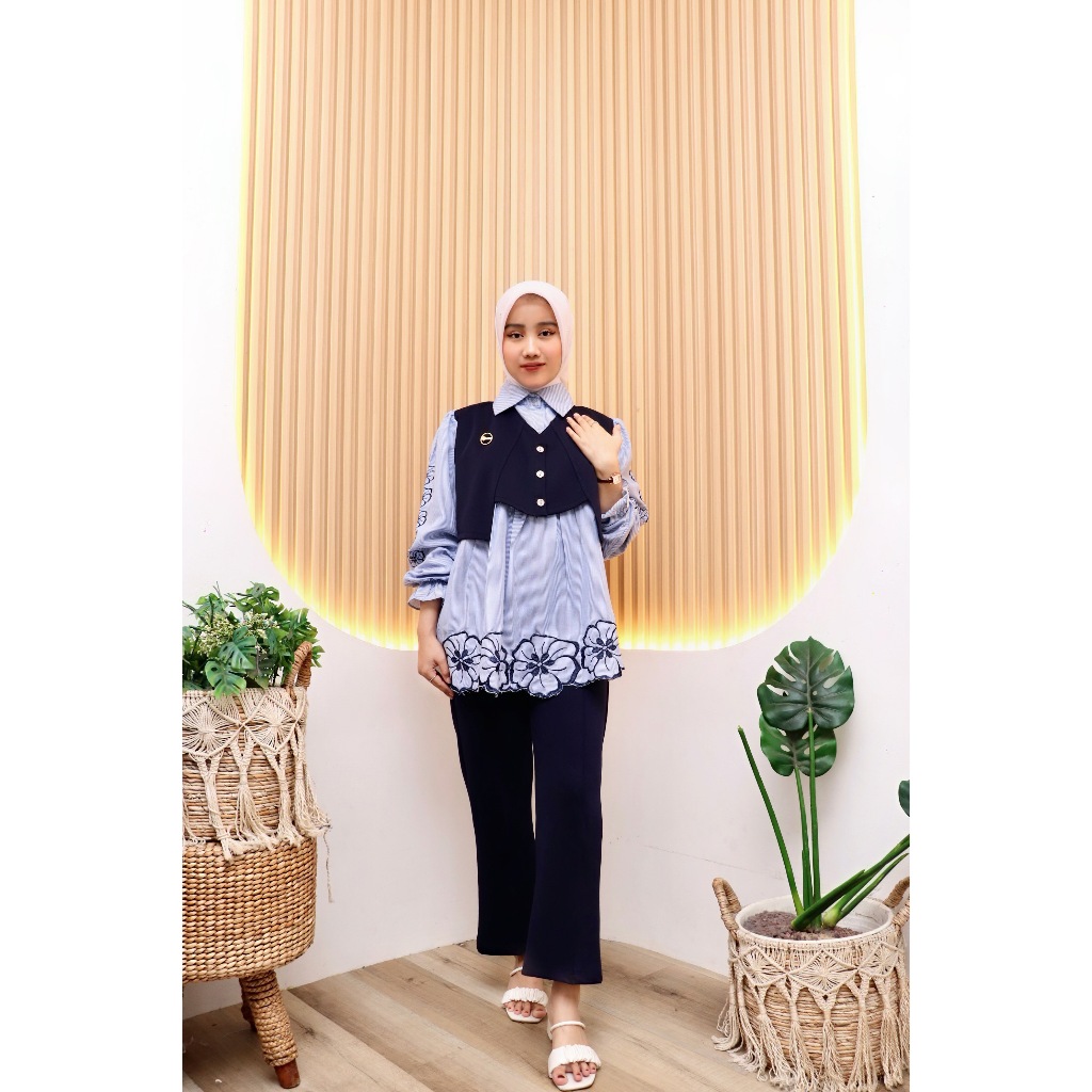 Missolla—Madamemalla Andina Setelan Celana Salur Vest Scuba Katun Fashion Muslim