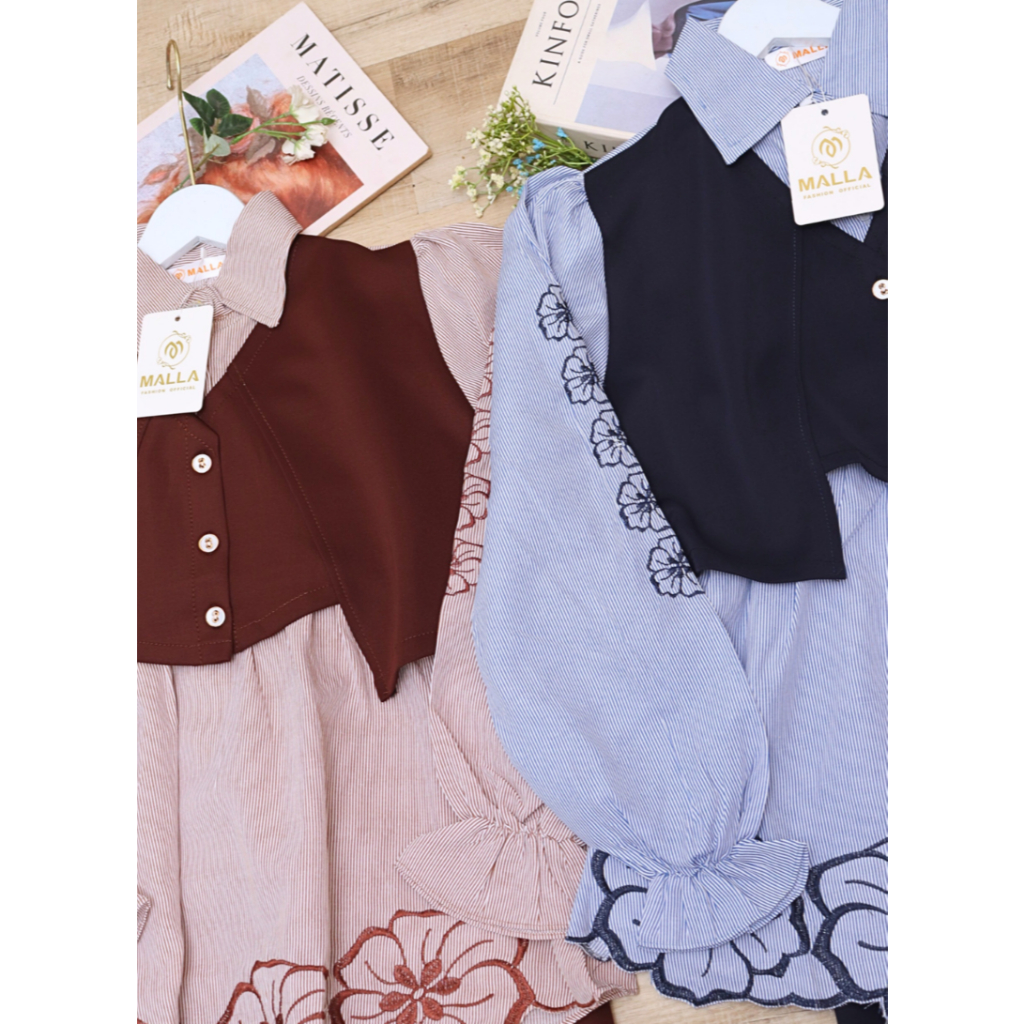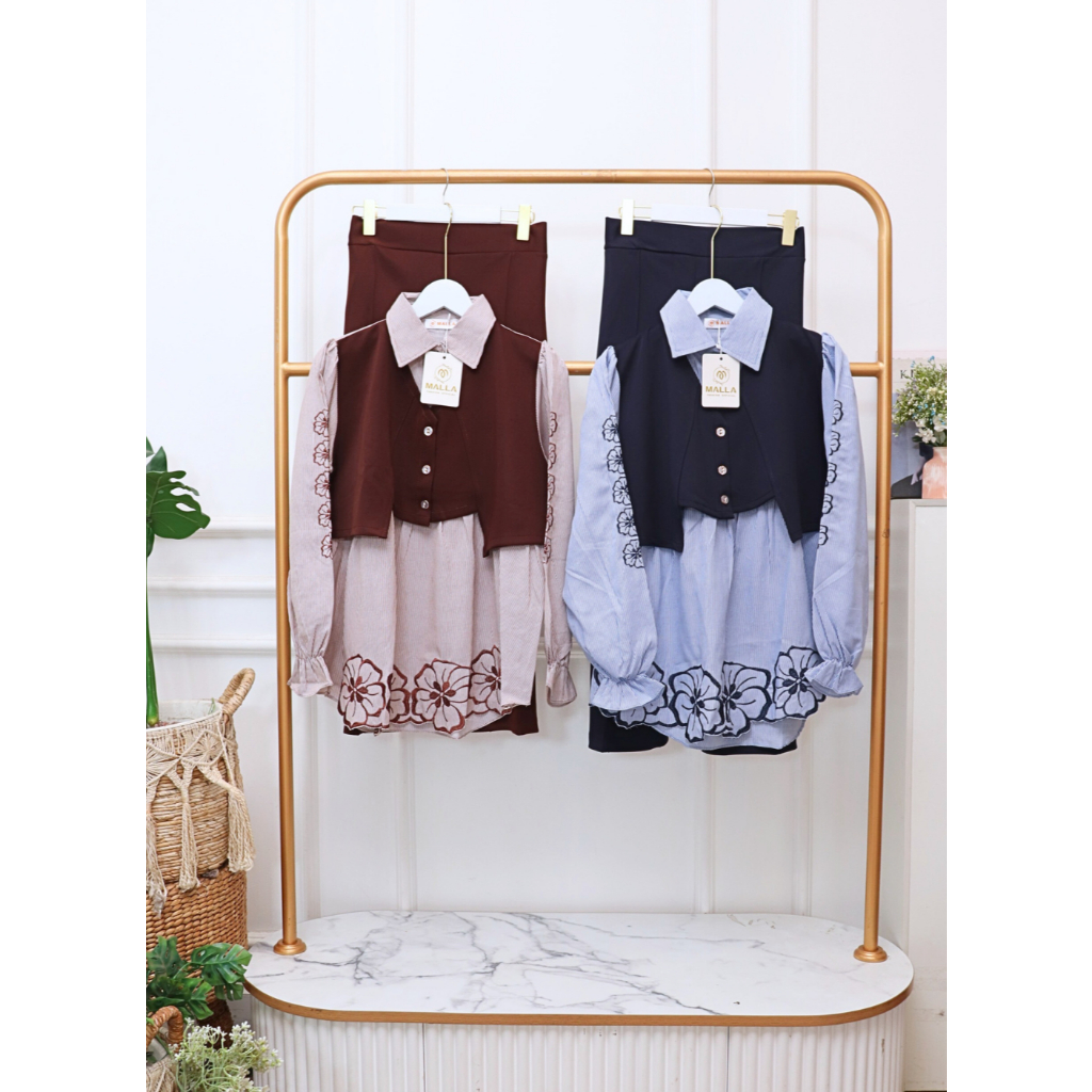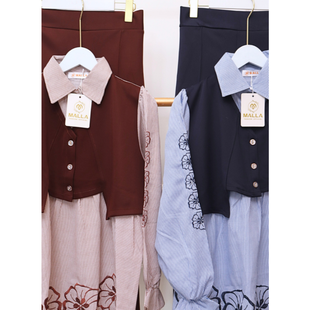 Missolla—Madamemalla Andina Setelan Celana Salur Vest Scuba Katun Fashion Muslim