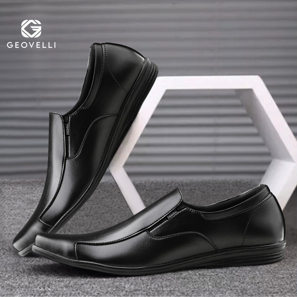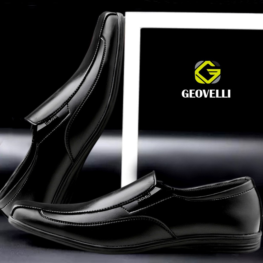 GEOVELLI Sepatu Pantofel Pantopel Kulit Pria Murah Pendek Formal Kerja Kantor Hitam Gudang pabrik