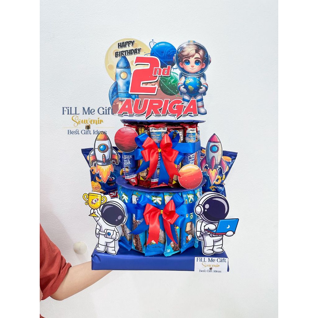 BJ - Astronot - Snack Tart Ulang Tahun / Birthday Gift Snack Tower 2 Tingkat