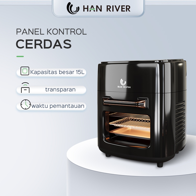 HAN RIVER Air Fryer 15L tombol layar sentuh Kapasitas besar 8-10 orang menggunakan /hitam 1400Watt