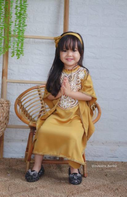 Kaftan Anak Premium Renda Manik Gamis | Baju Muslim Anak | Baju Lebaran Anak | Kaftan QIARA SYAFIQA