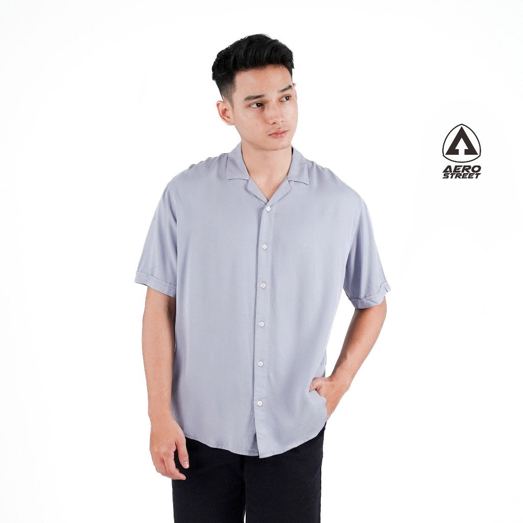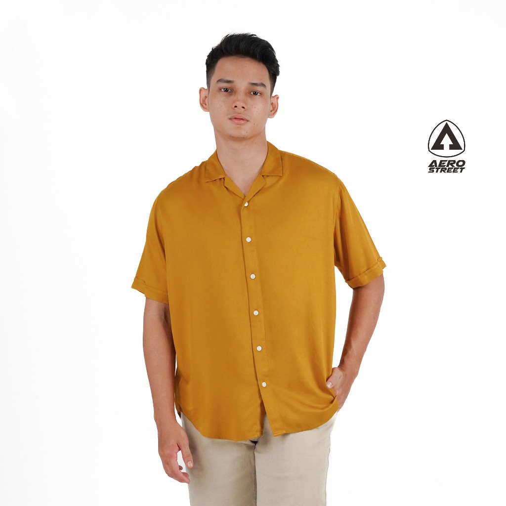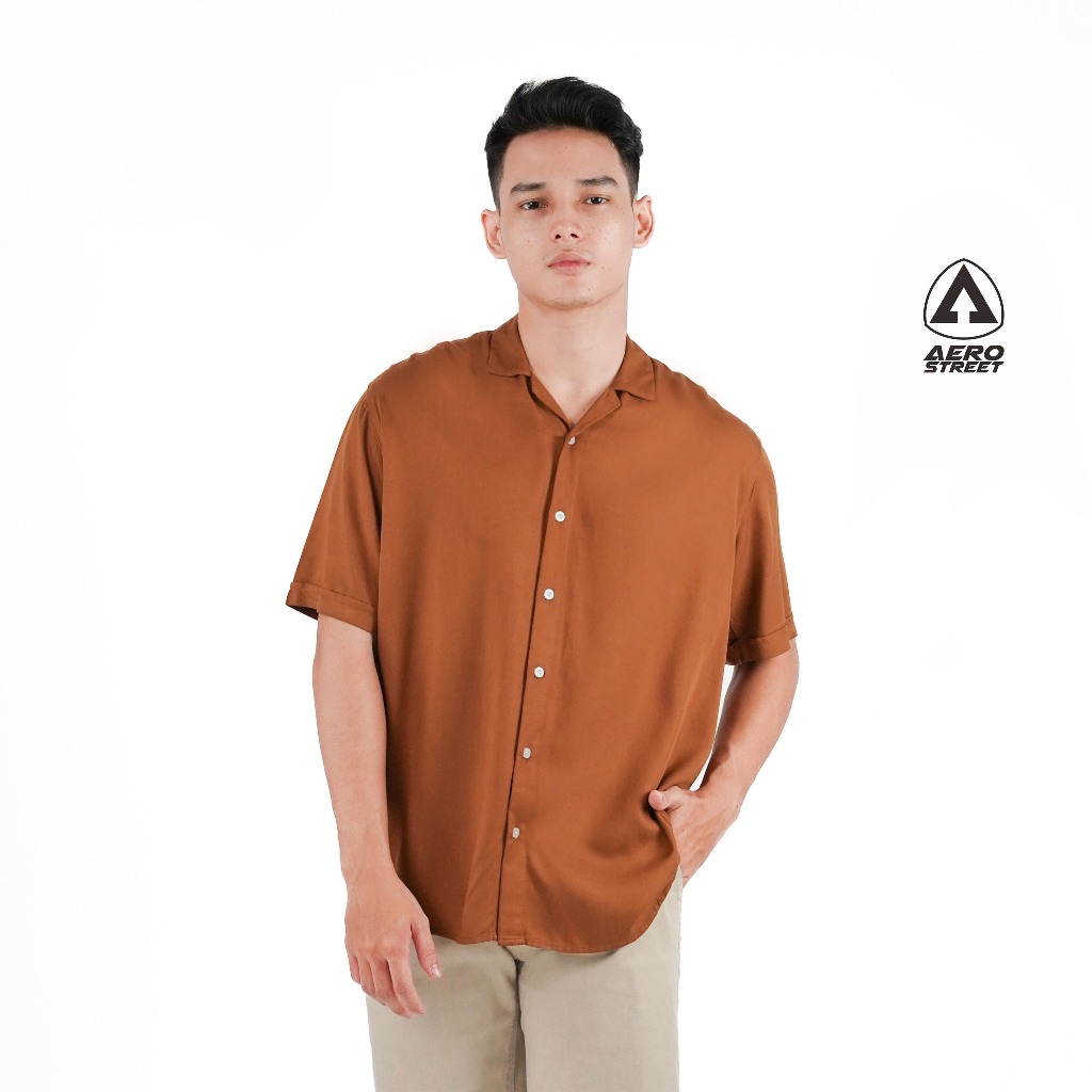 Aerostreet Kemeja Rayon Marva Krem Hawai Polos Cerah Pria Wanita QABAA