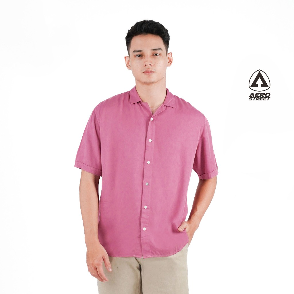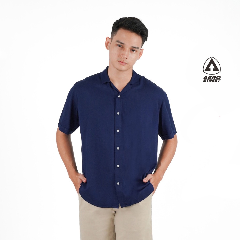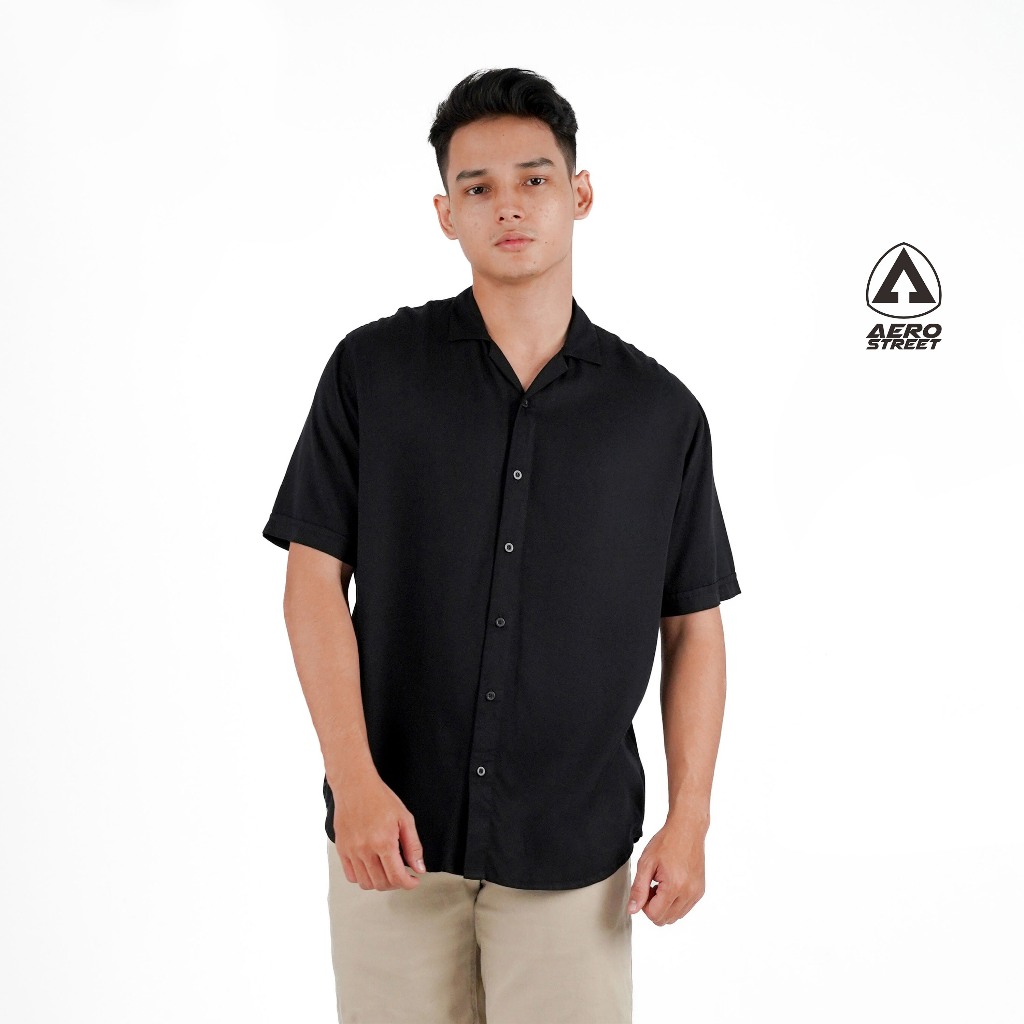 Aerostreet Kemeja Rayon Marva Krem Hawai Polos Cerah Pria Wanita QABAA