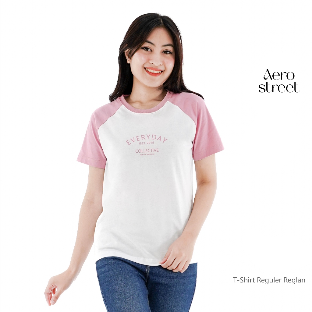 Aerostreet Everyday Kaos Wanita White/Dusty Pink T-shirt Cewek Women Casual Cotton Combed Adem Tidak Panas
