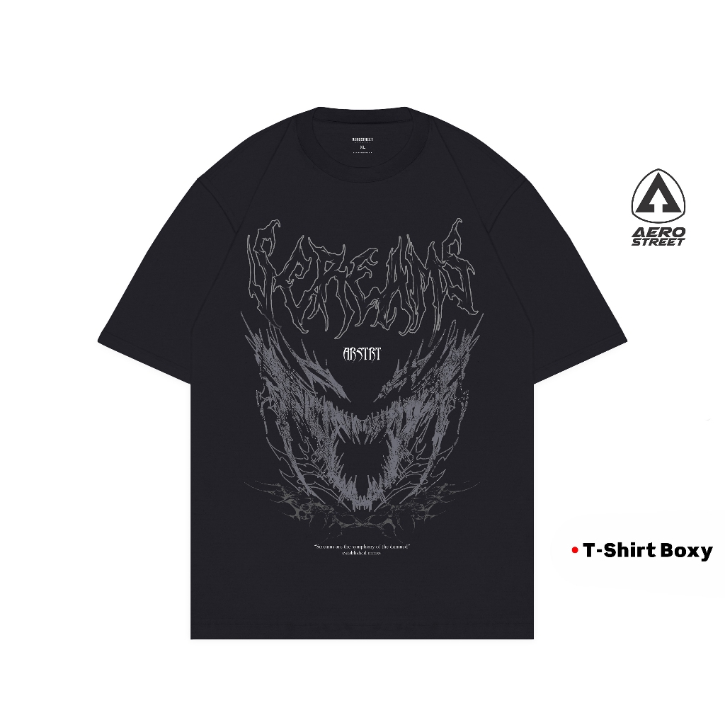 Aerostreet Screams Kaos Pria Boxy Fit Abu Tua T-shirt Cowok Men Casual Cotton Combed Premium Tidak Menerawang