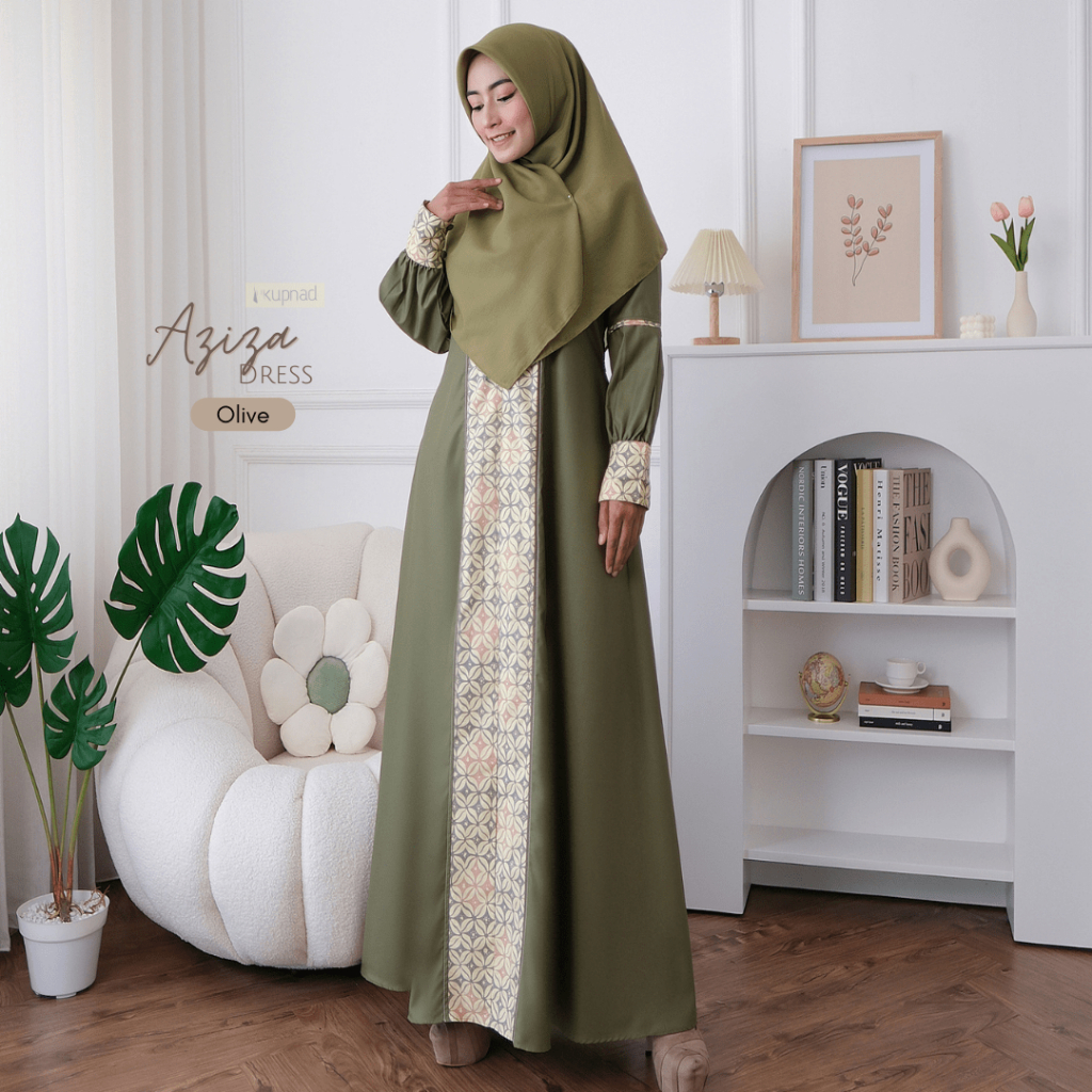 KUPNAD Gamis Batik Katun Toyobo - Aziza Dress Olive