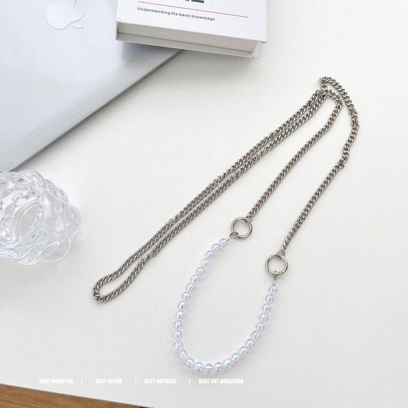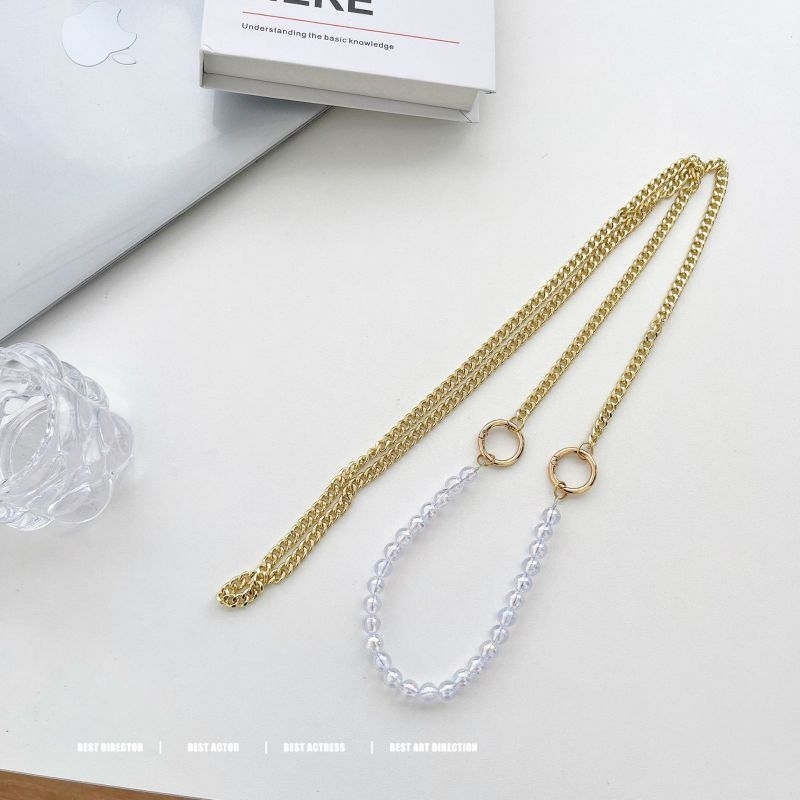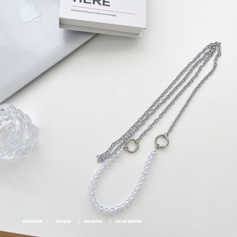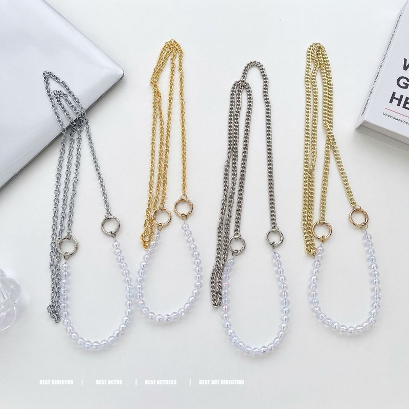 Tali Selempang Hp Gantungan Hape Rantai Simple 2in1 Hias Mutiara Bening Cantik Warna Cantik Fashion Korean Style Update