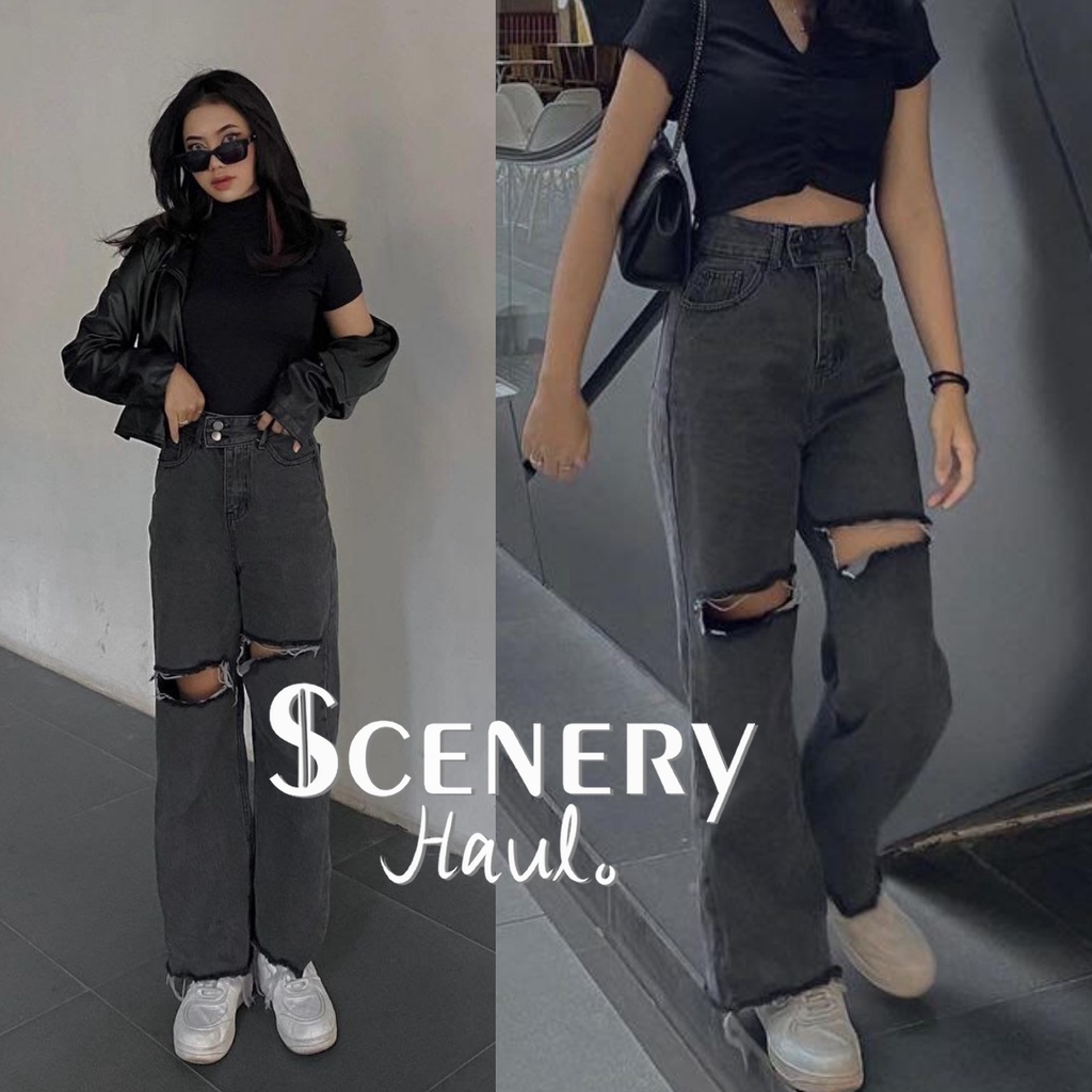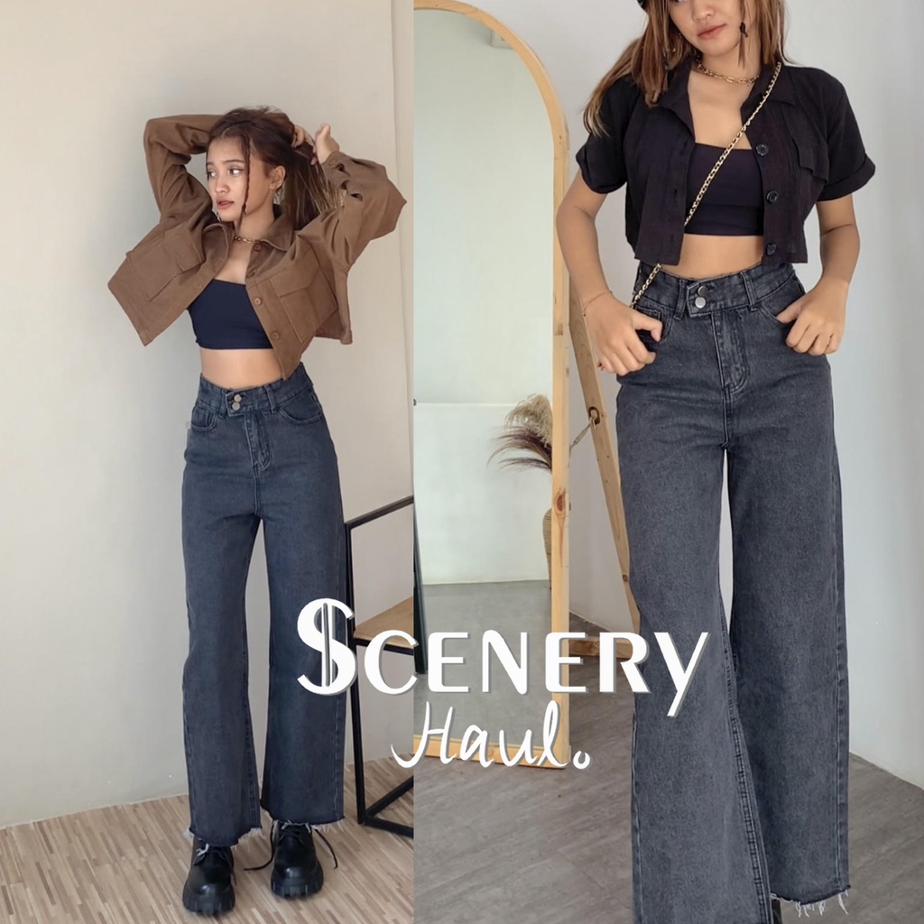CELANA HIGHWAIST WIDELEG KULOT JEANS WARNA BLACKWASHED (ROSIE HW JEANS)