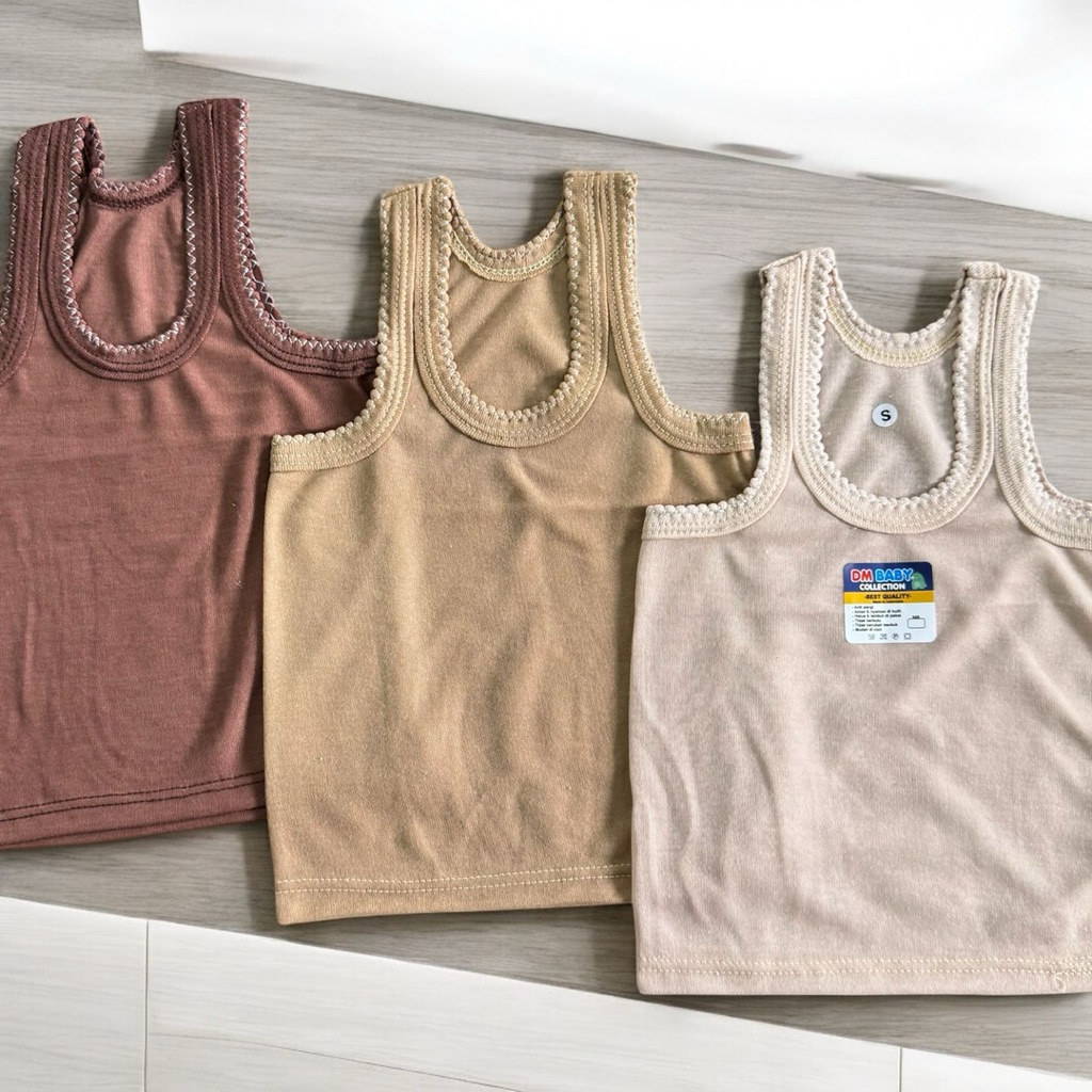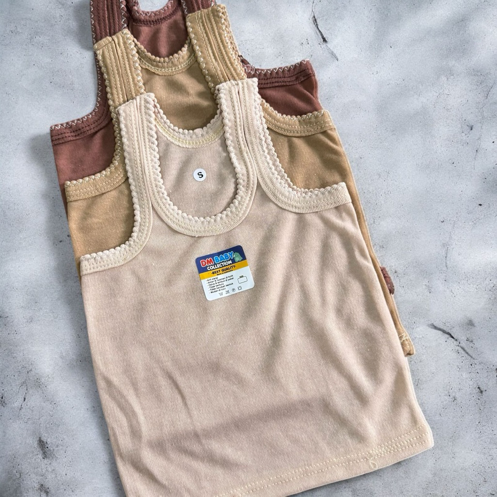 12 PCS SINGLET SERI COKLAT KAOS DALAM ANAK / KAOS SINGLET BAYI / KAOS DALAM PEREMPUAN / KAOS DALAM LAKI - LAKI Putih Laki-Laki Newborn Katun