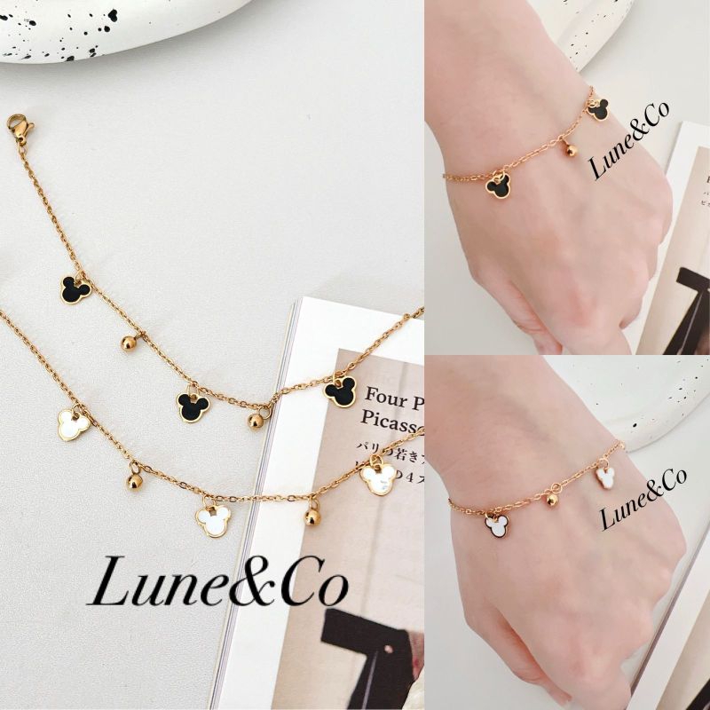 RS345 Gelang Anak Dan Dewasa Rantai Kecil Motif Mickey Bola Titanium Anti Karat