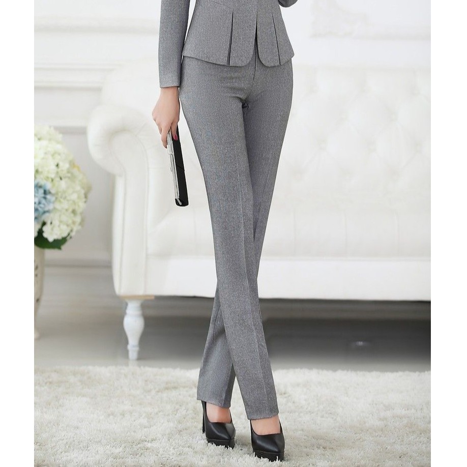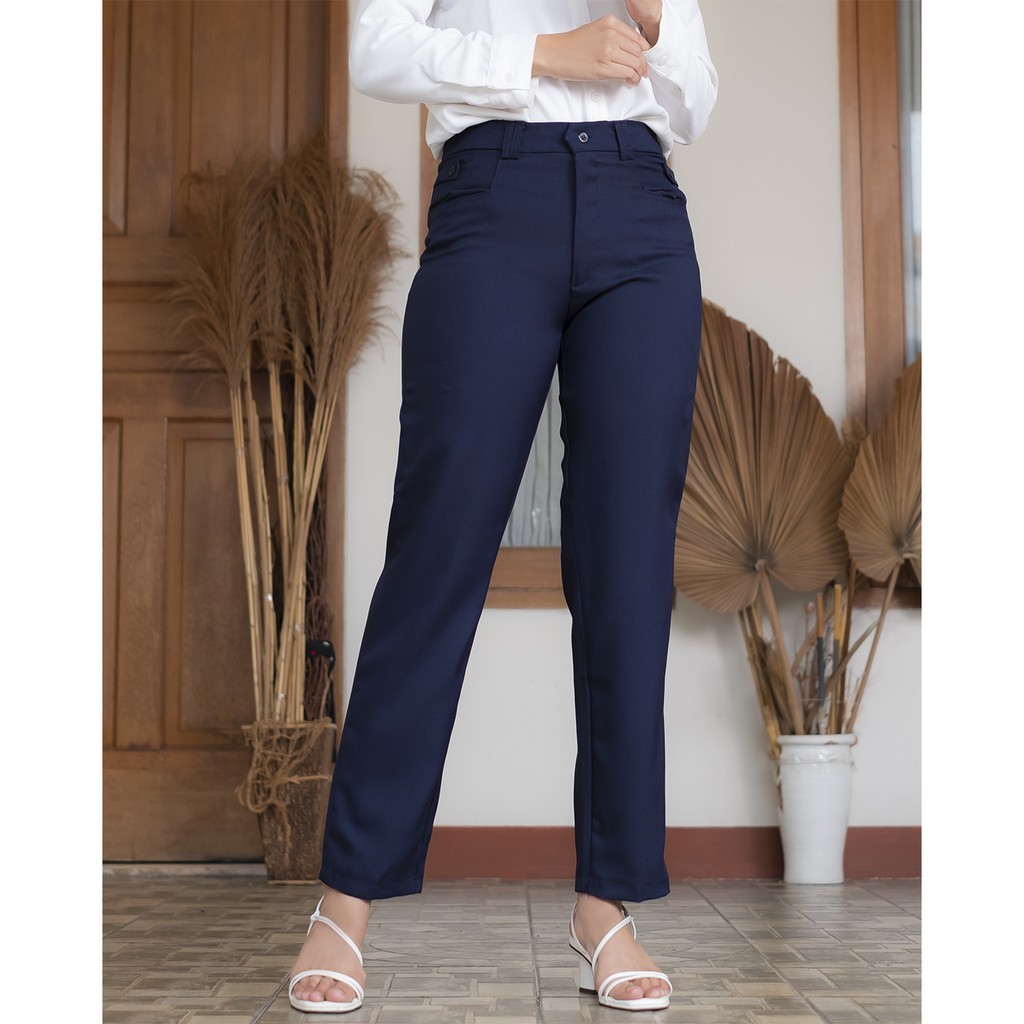 CELANA FORMAL KERJA KANTOR RESMI BAHAN WANITA PANJANG SLIMFIT S-5L HITAM PUTIH NAVY ABU SILVER