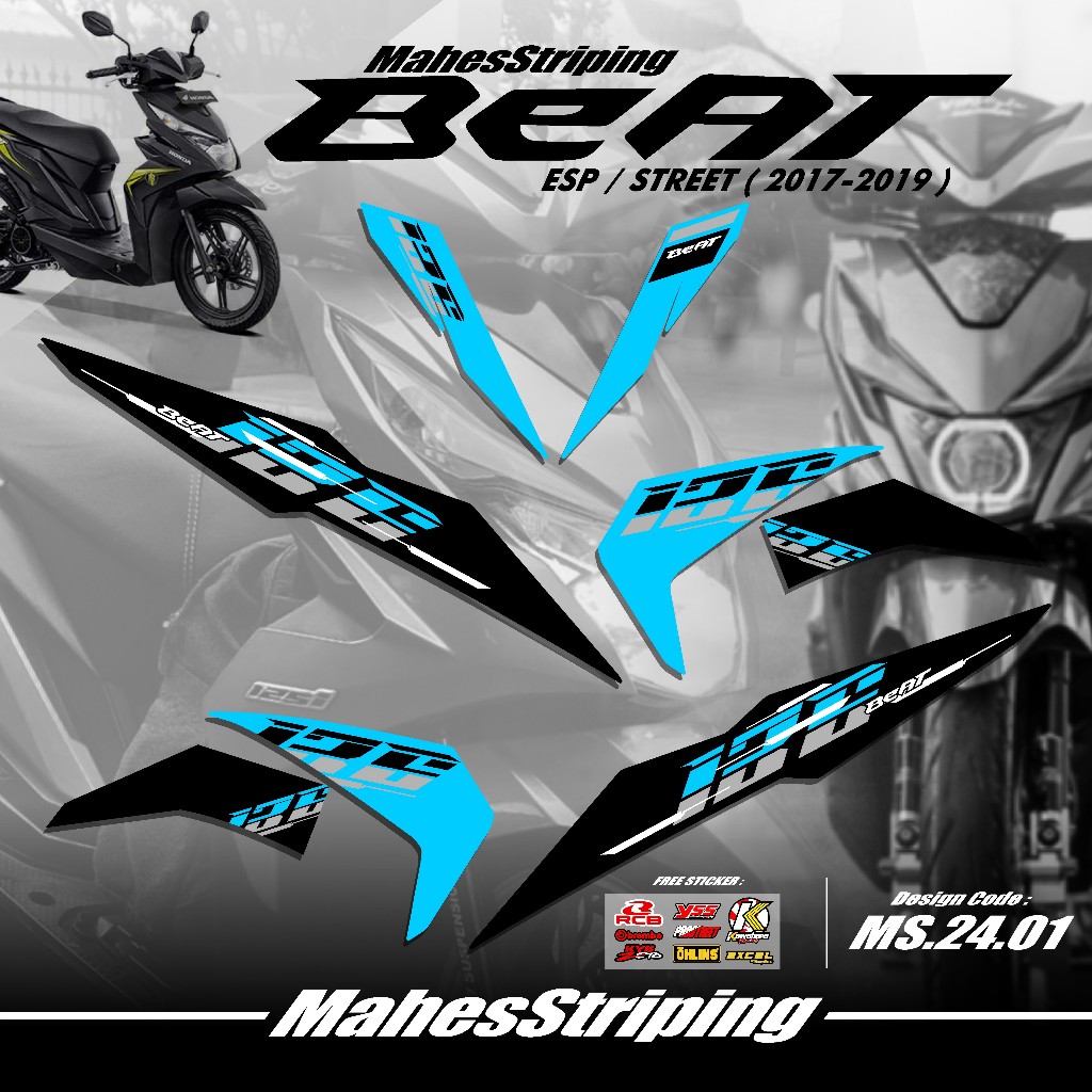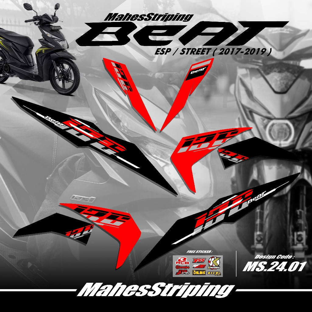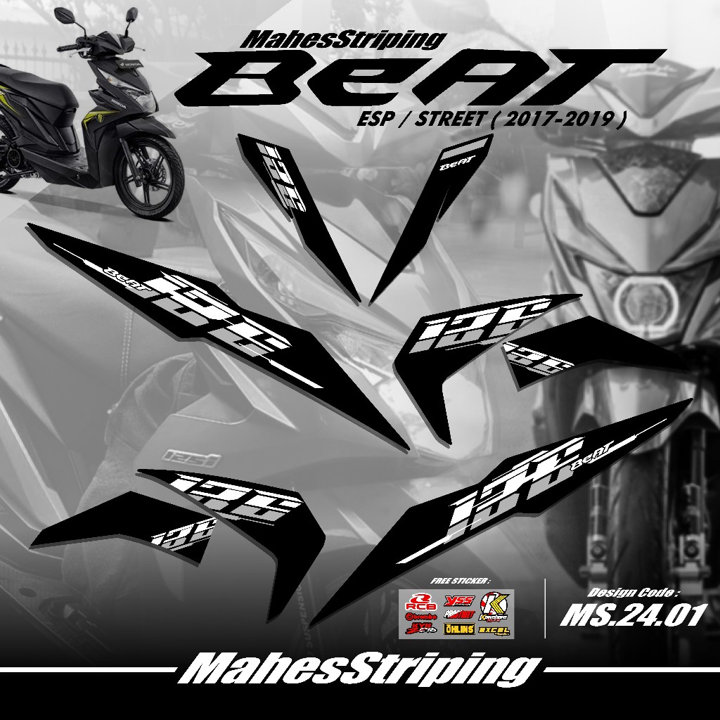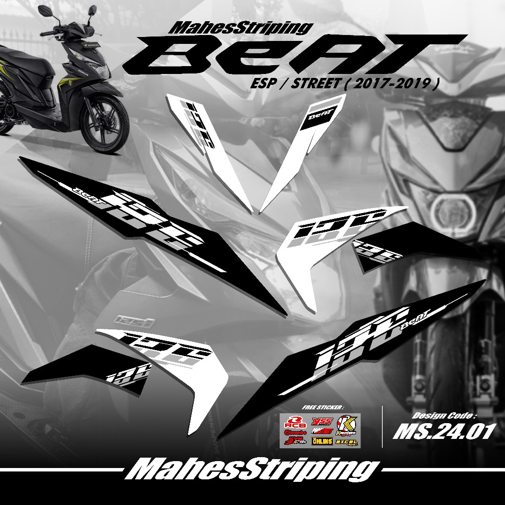 Striping Beat Fi ESP Beat STREET Terbaru MS G.24.01 - Sticker Variasi Beat 2017 2018 2019 Stiker Semi Full Body Free Stiker Sponsor Racing Road Race Gambar Desain Simple Vietnam Style Minimalis Copy Transparan COD