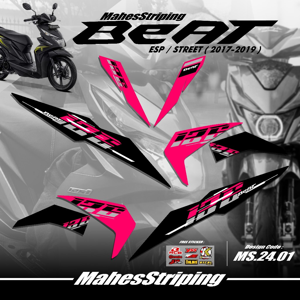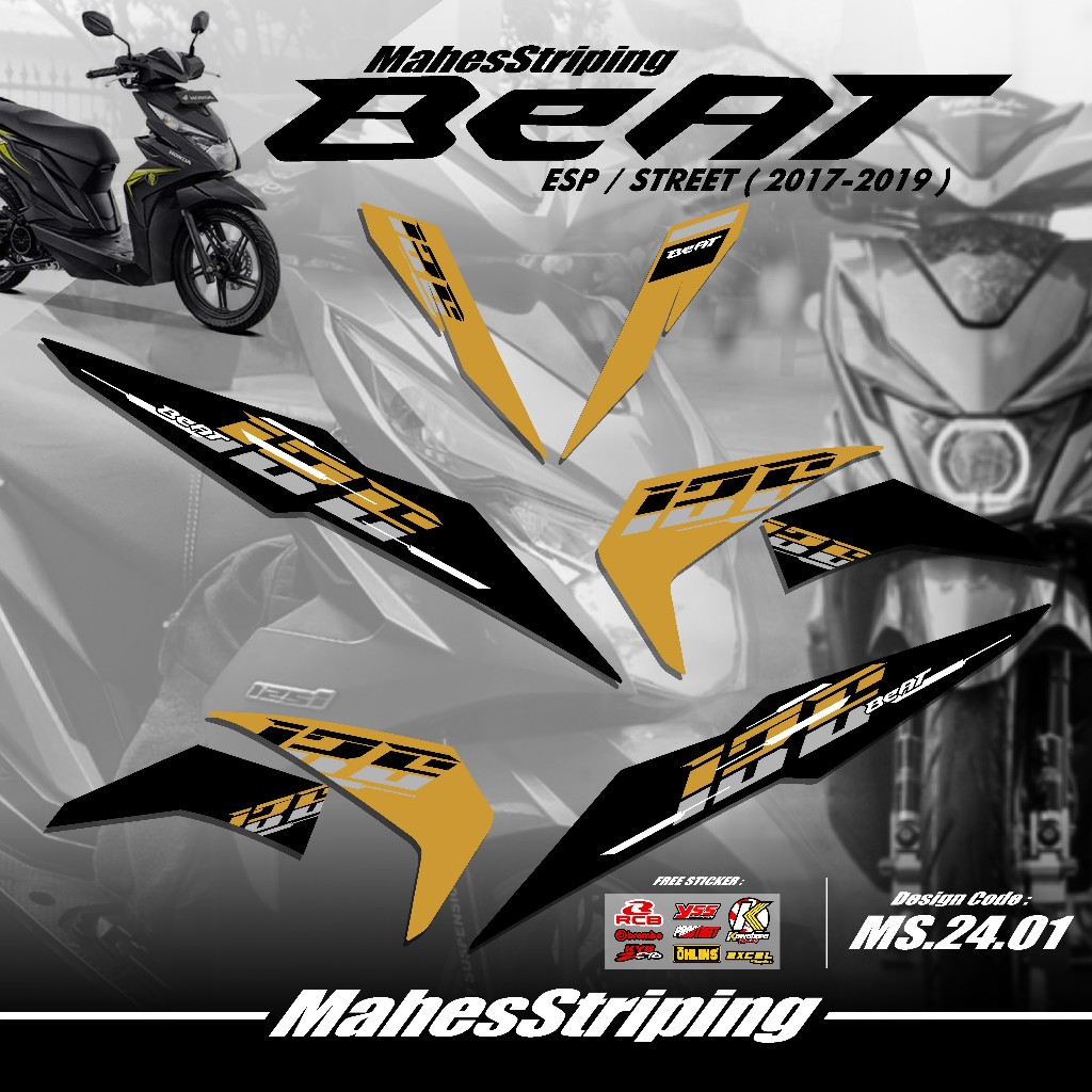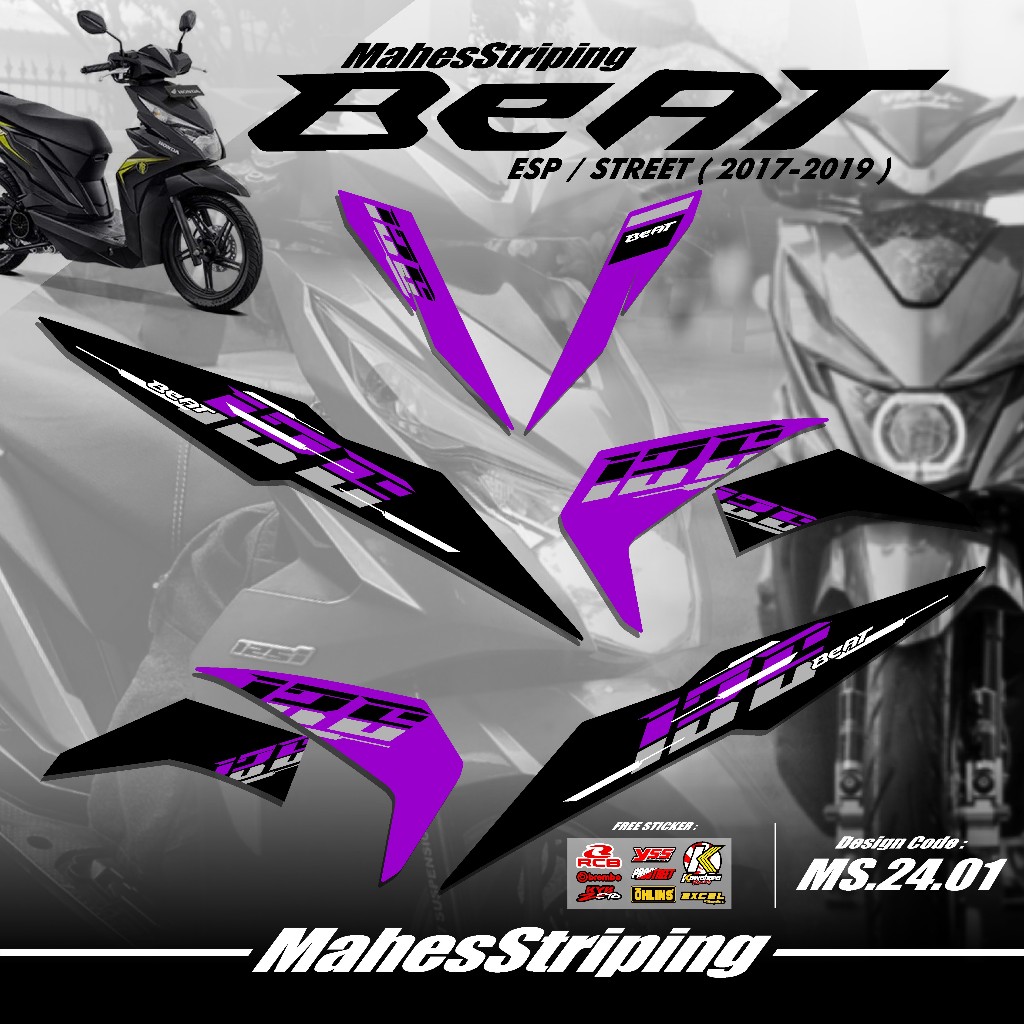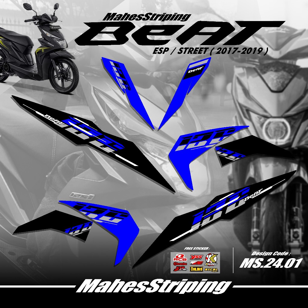 Striping Beat Fi ESP Beat STREET Terbaru MS G.24.01 - Sticker Variasi Beat 2017 2018 2019 Stiker Semi Full Body Free Stiker Sponsor Racing Road Race Gambar Desain Simple Vietnam Style Minimalis Copy Transparan COD