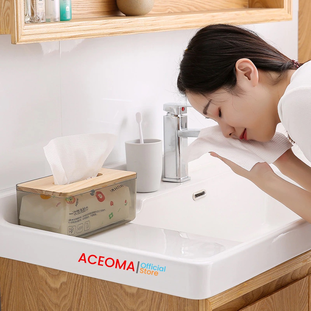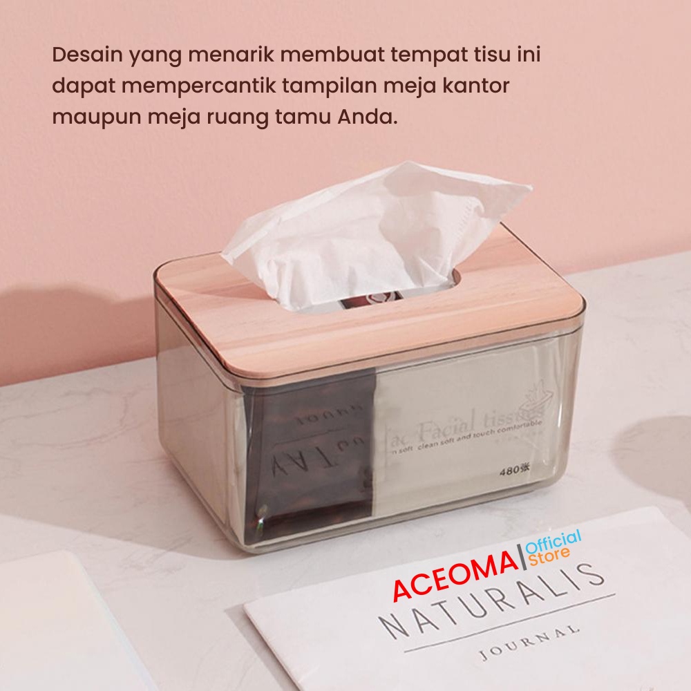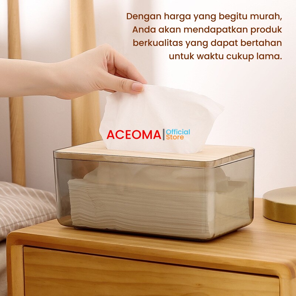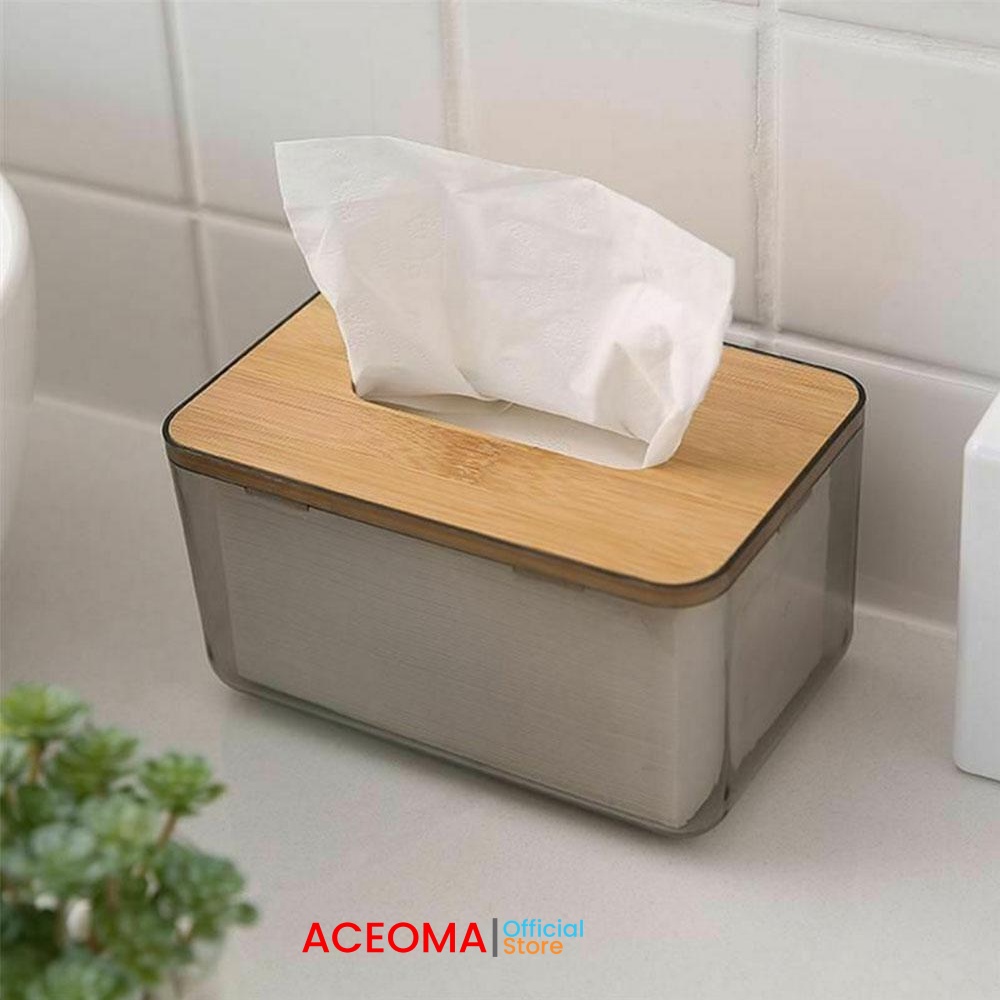 Kotak Tempat Tisu Transparan Kayu Plastik Minimalis Tissue Box Gray Nordic