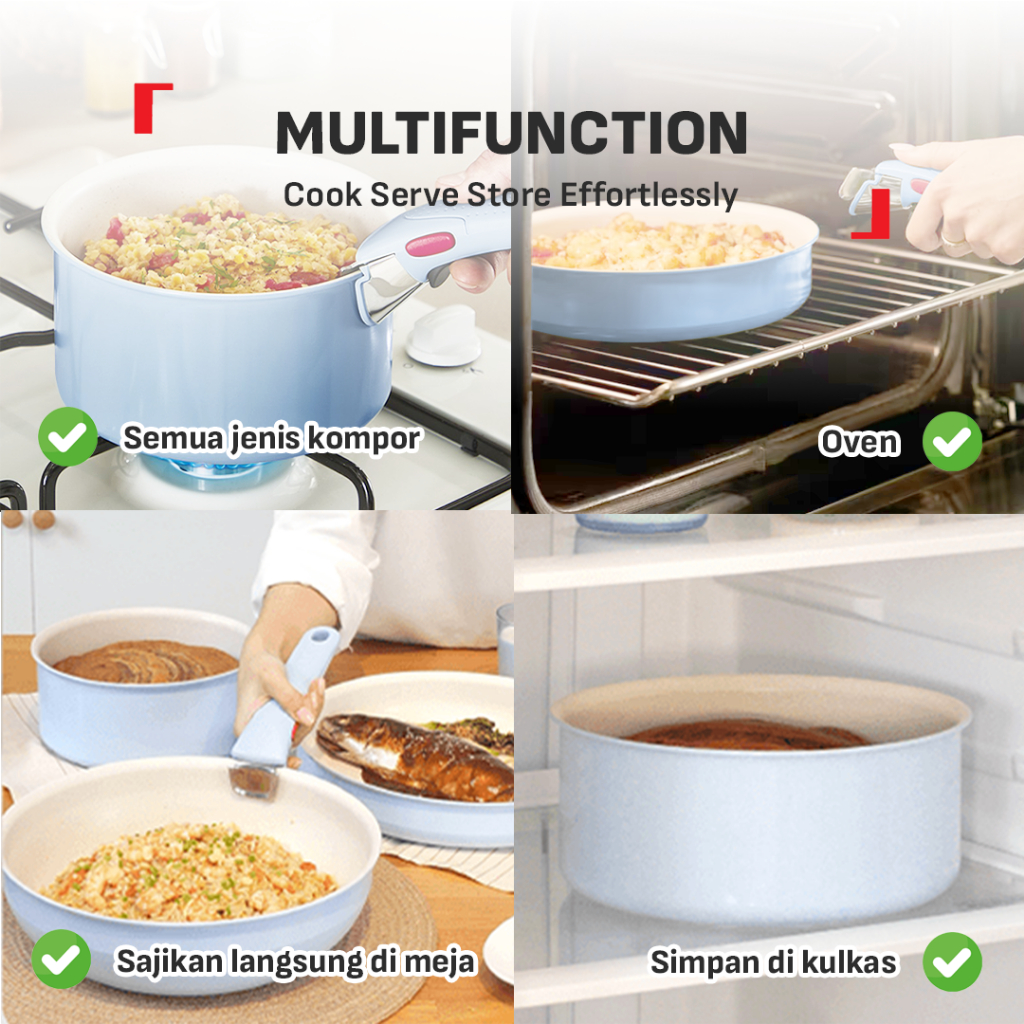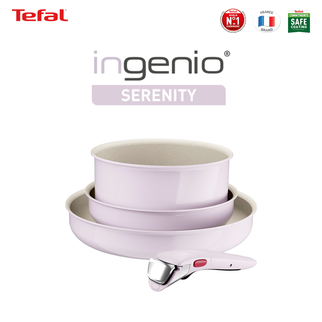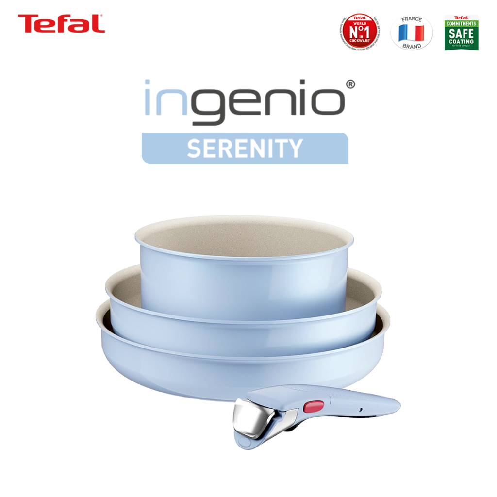 Tefal Serenity Set 4pcs / Set Panci & Wajan Anti Lengket Gagang Lepas Pasang Cantik Estetik Bisa di Semua Kompor dan Oven /Garansi 10 Tahun