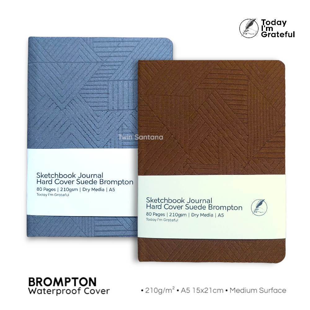 Sketchbook Jurnal A5 Hard Cover Waterproof Suede Brompton Motif 210gsm 80 Halaman - Medium Surface