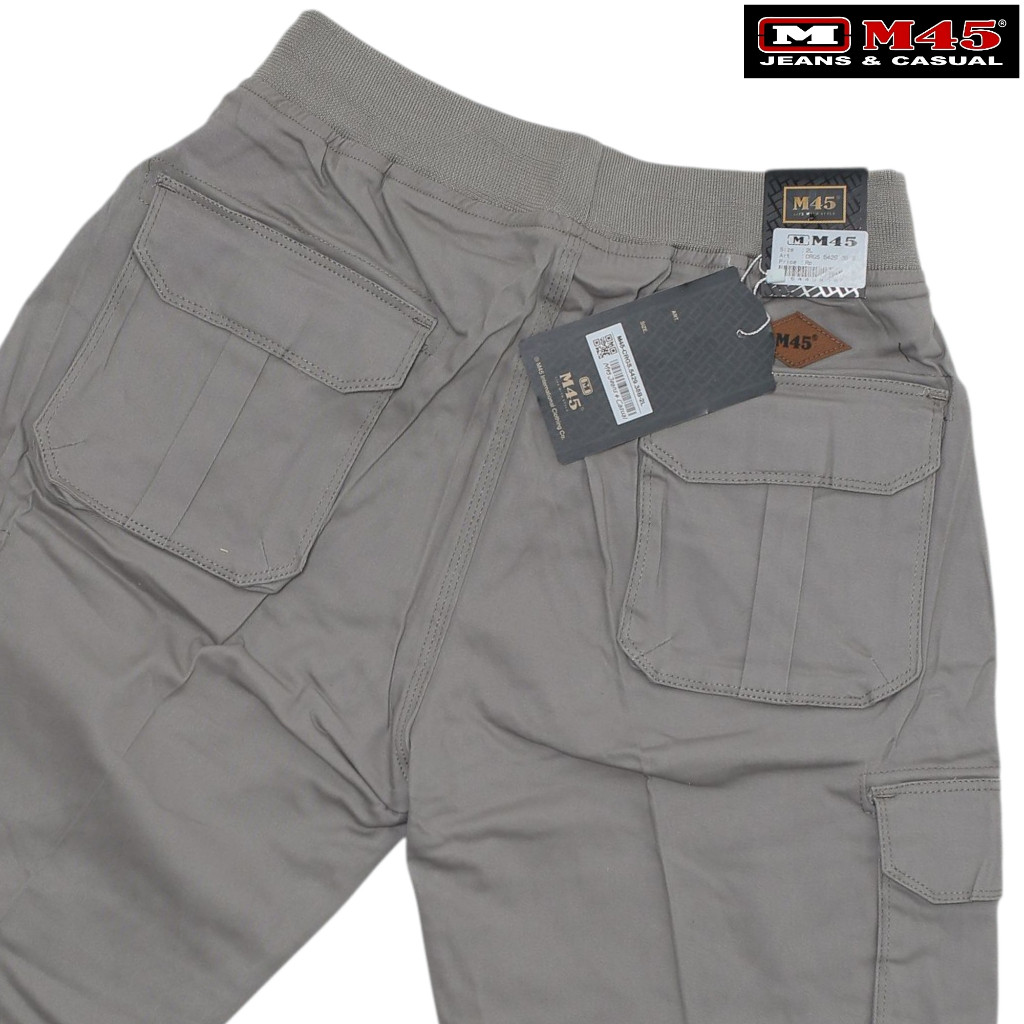 Celana Pendek Pria Kargo Kolor Pinggang Karet Tali Serut Chinos Casual Abu Krem M45 Original - CRGS.5429.38
