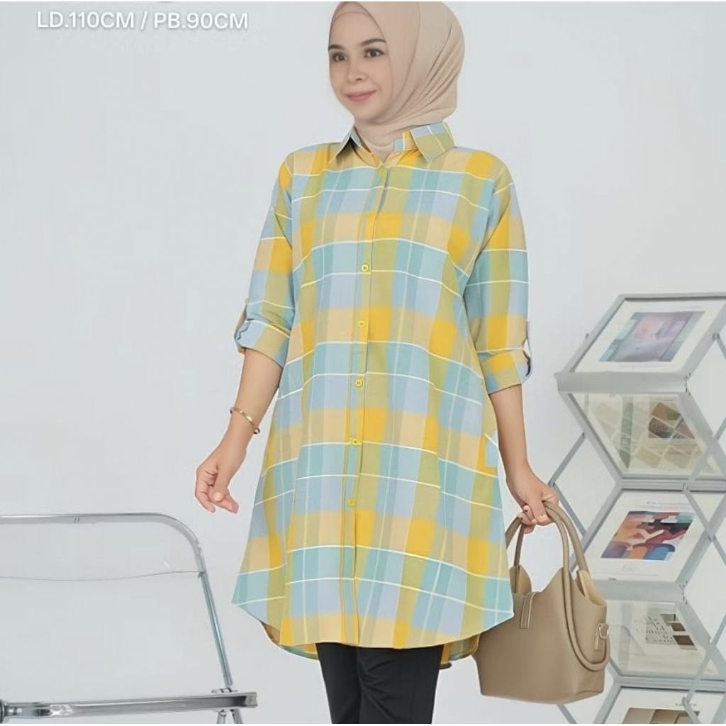 TUNIK KATUN MOTIF KOTAK KOTAK TUNIK TK01 TUNIK LEBARAN 2026 / Gerai Winarti