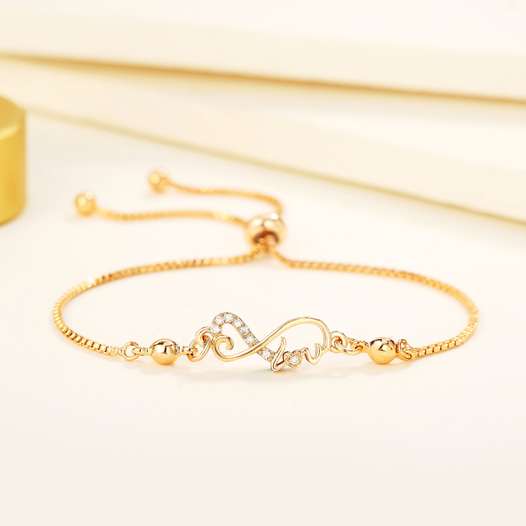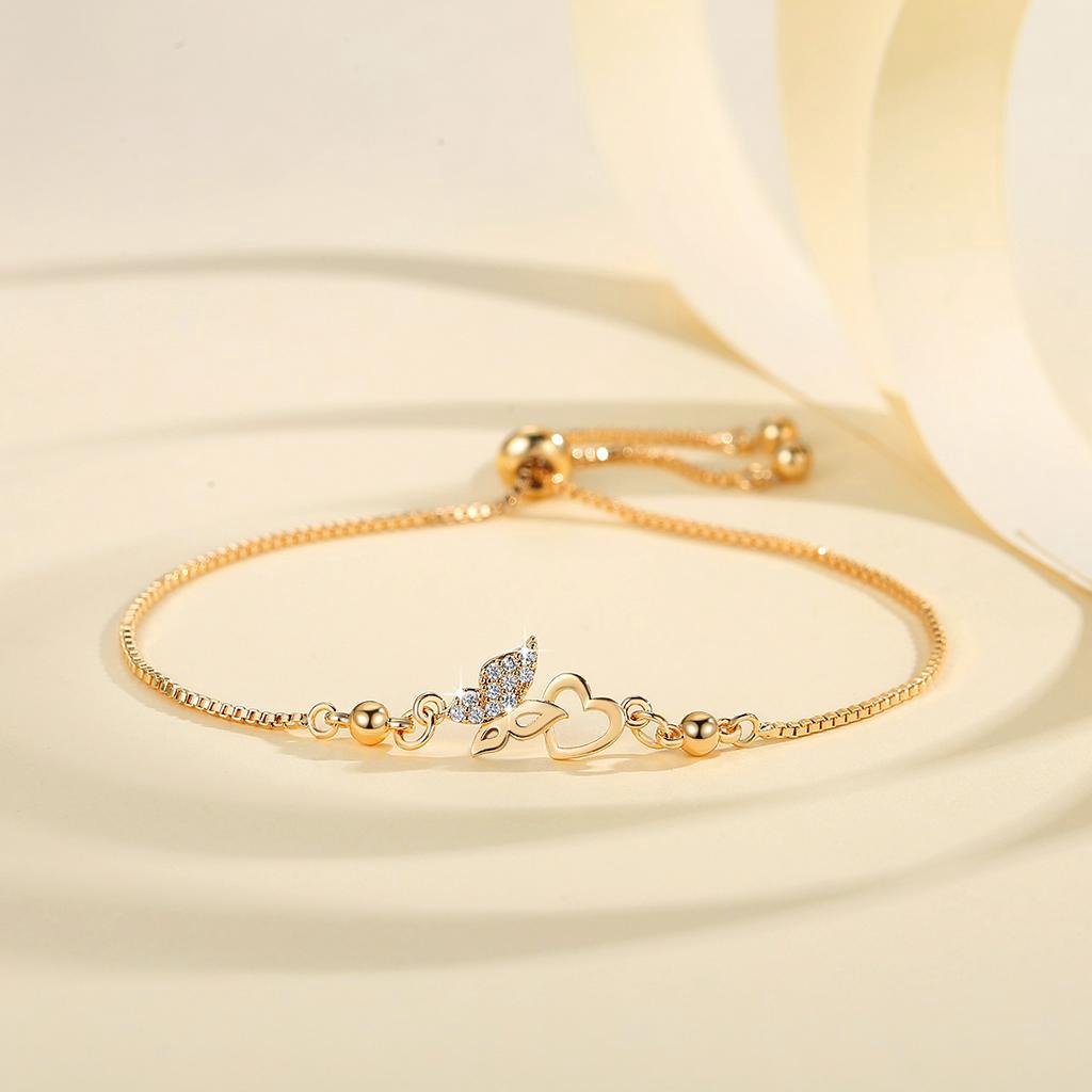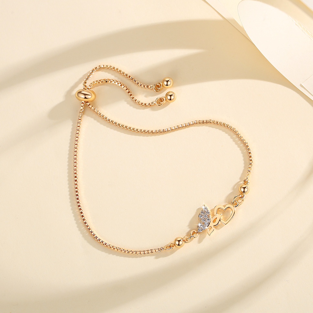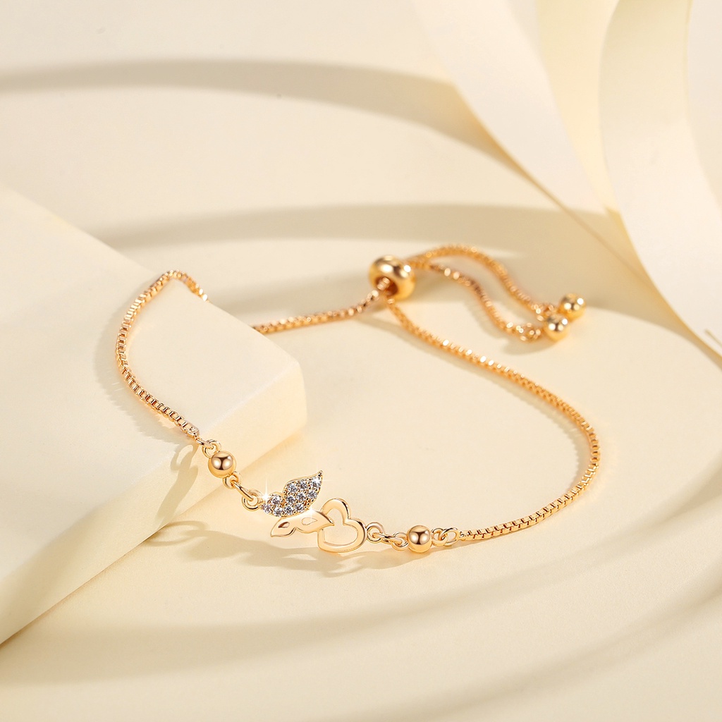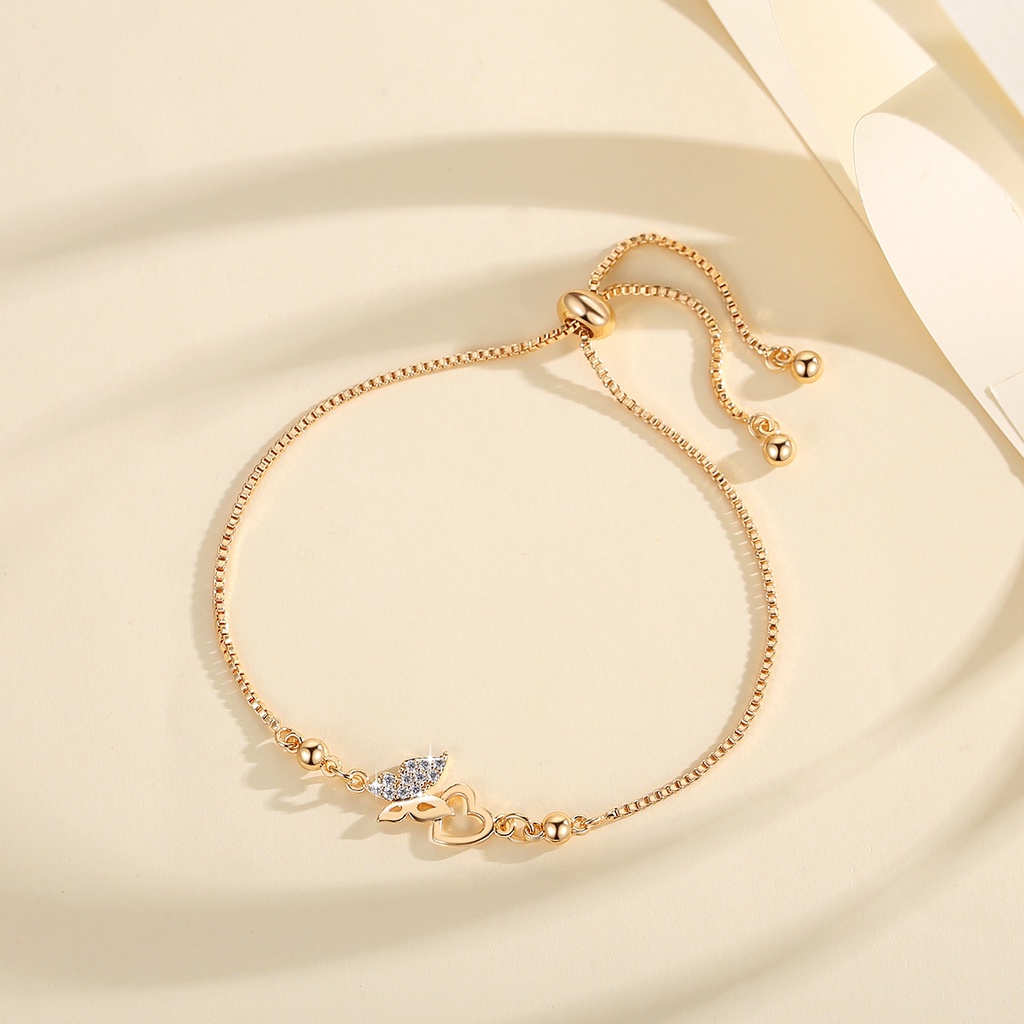 Lanme Jewelry Gelang Hati Wanita Titanium Anti Karat Gold Liontin Berlian Aksesoris Fashion Gelang Kupu Lapis Emas Y736