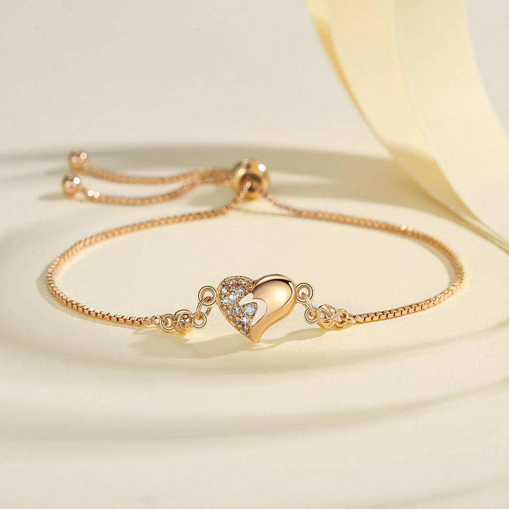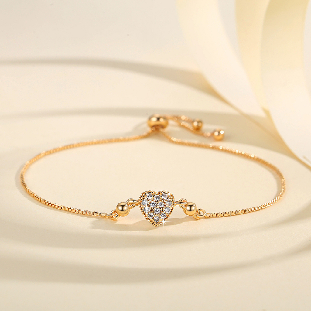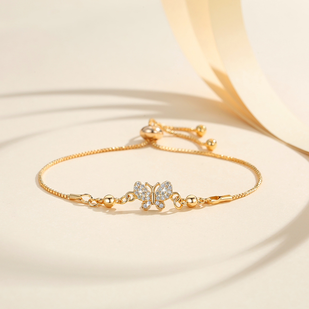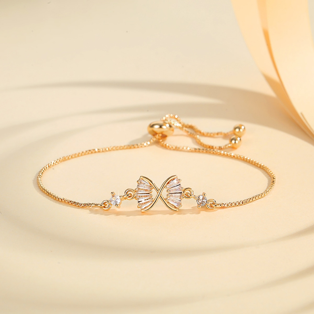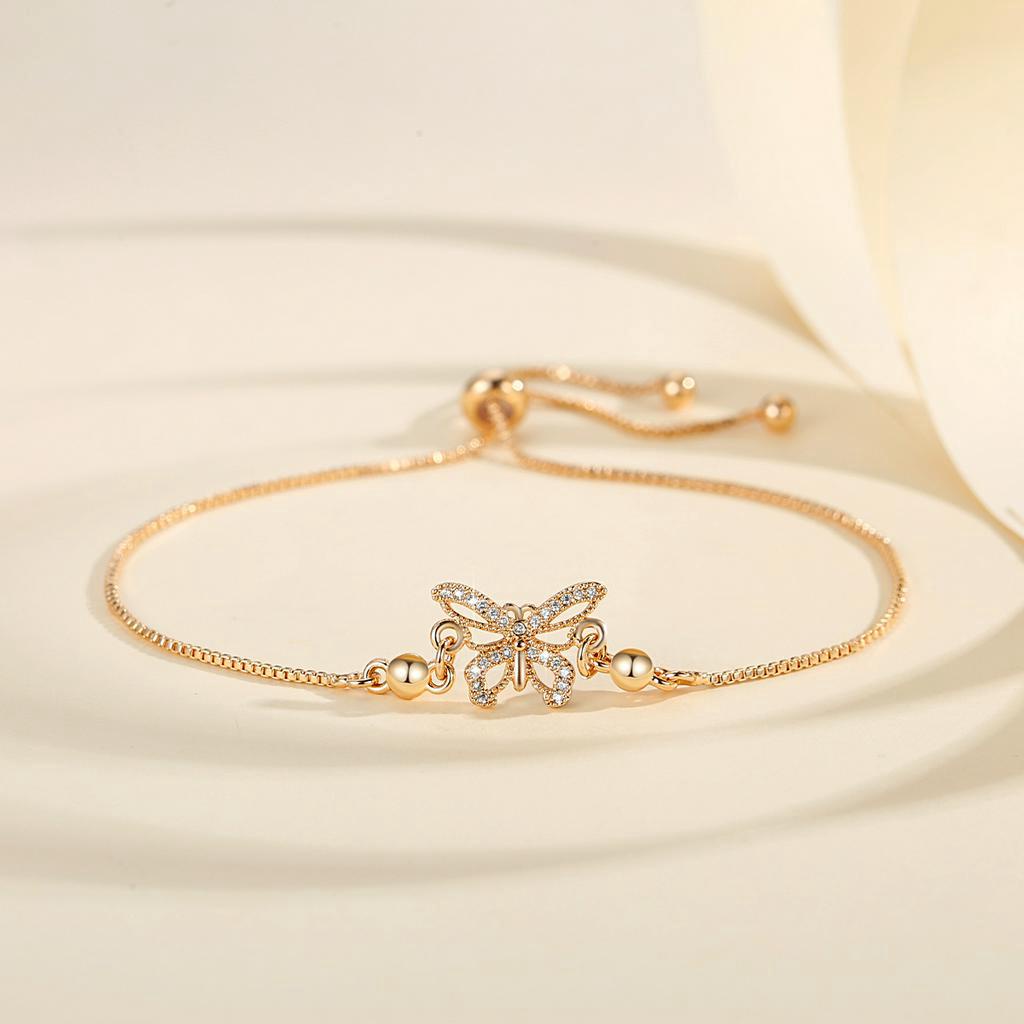 Lanme Jewelry Gelang Hati Wanita Titanium Anti Karat Gold Liontin Berlian Aksesoris Fashion Gelang Kupu Lapis Emas Y736