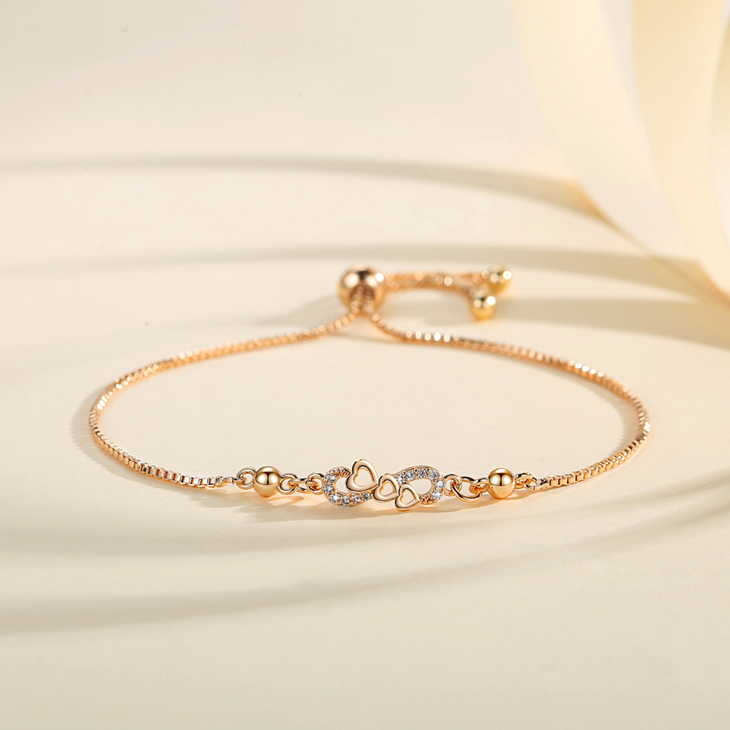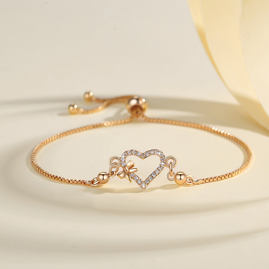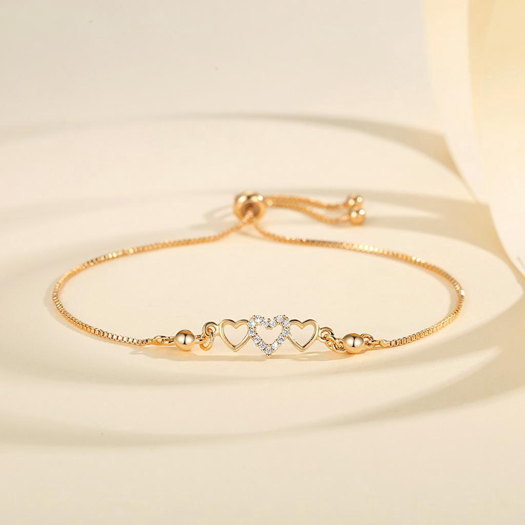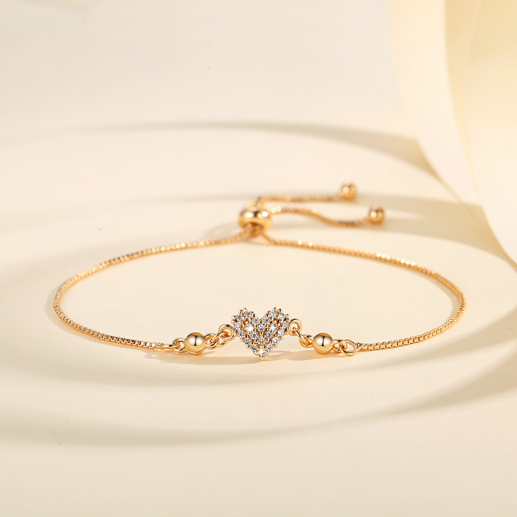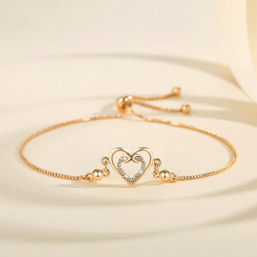Lanme Jewelry Gelang Hati Wanita Titanium Anti Karat Gold Liontin Berlian Aksesoris Fashion Gelang Kupu Lapis Emas Y736