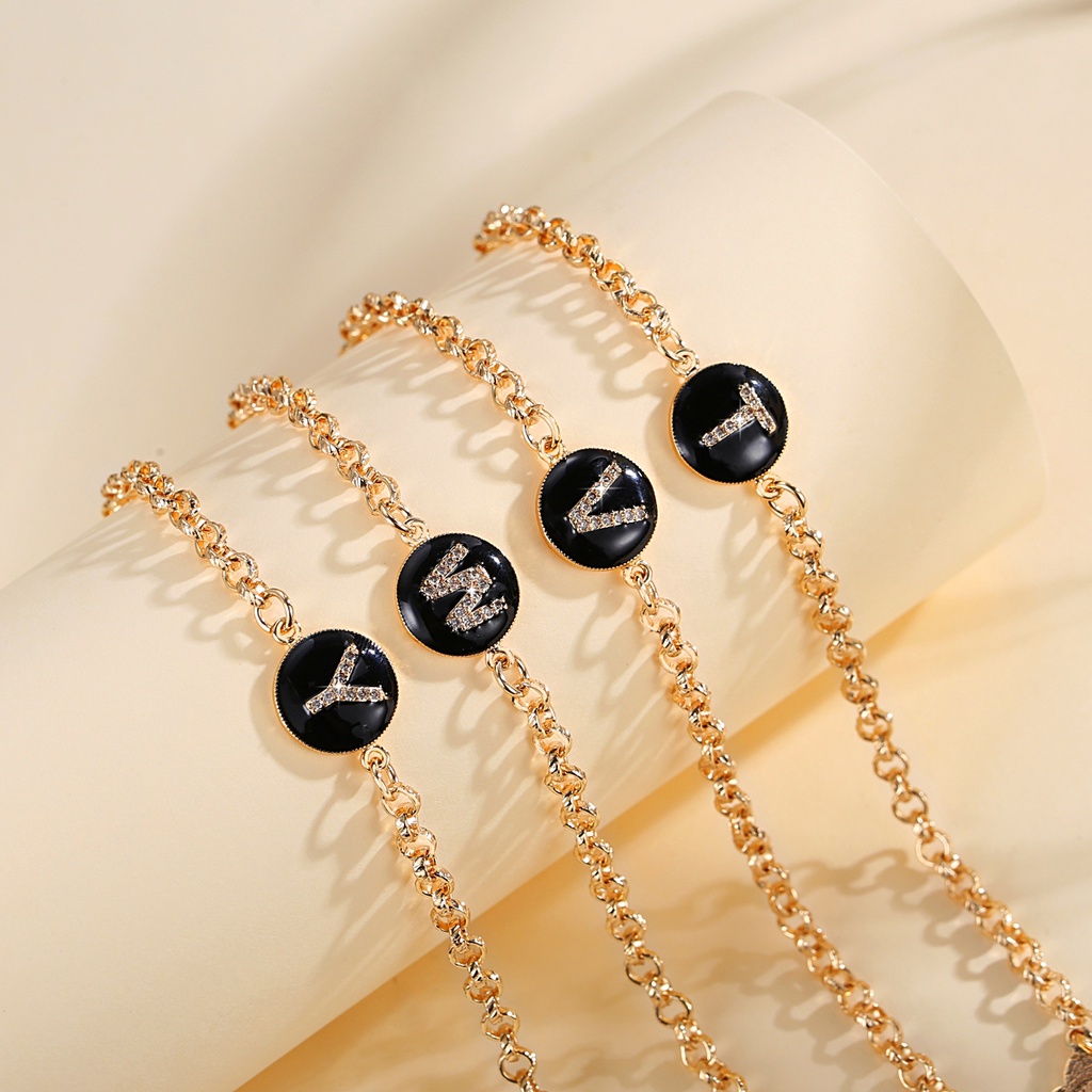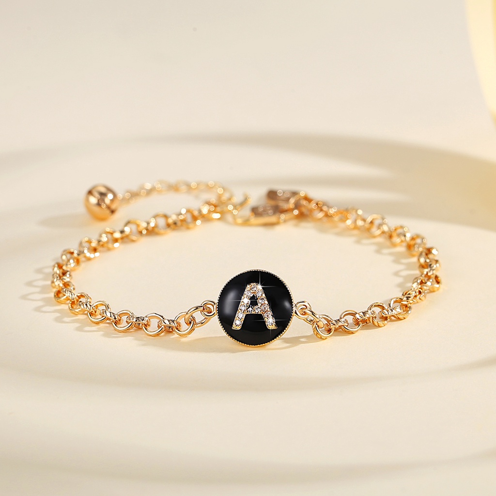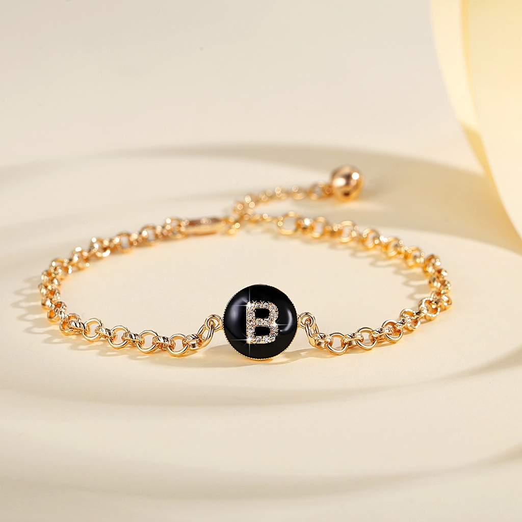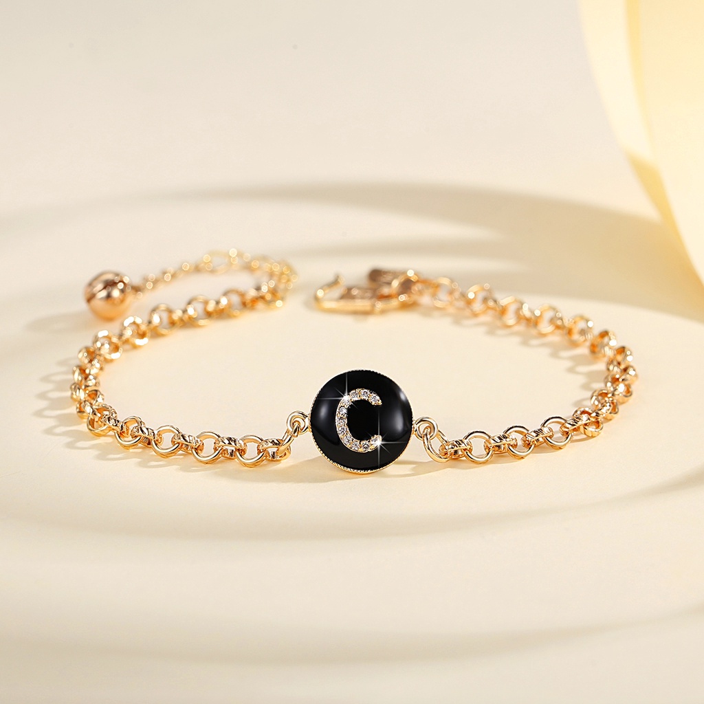 Lanme Jewelry Gelang Titanium Wanita Inisial Huruf Emas Anti Karat Gelang Titanium Huruf Gold Fashion Aksesoris Korea Y552