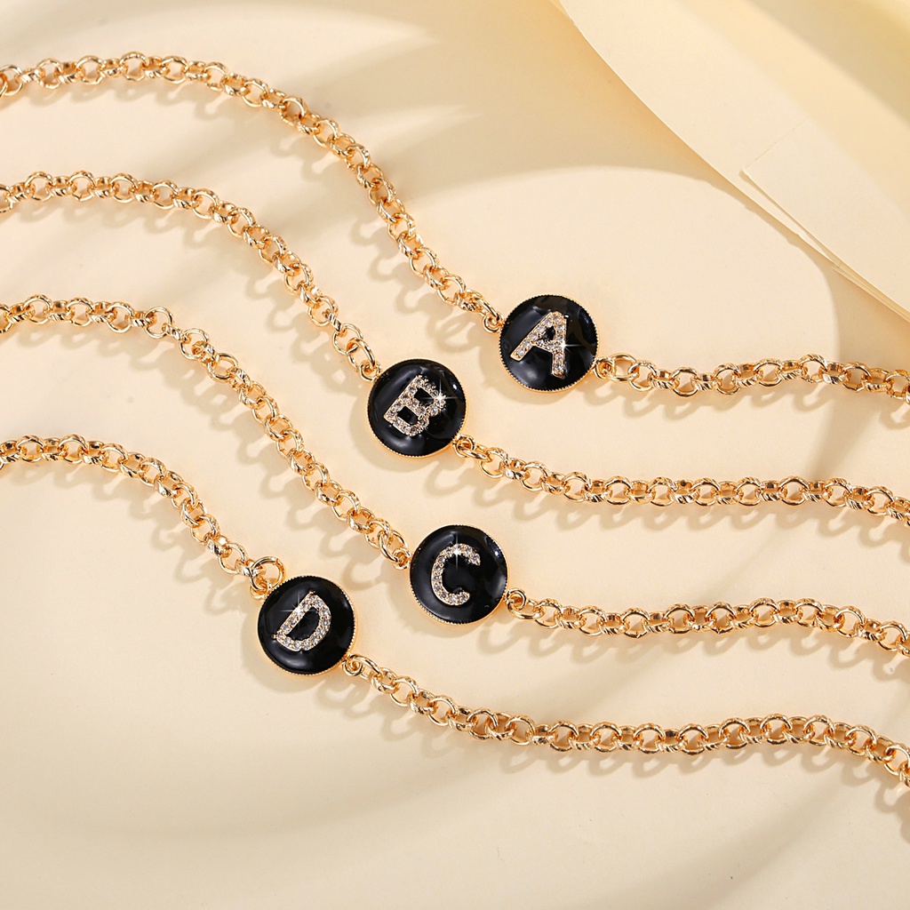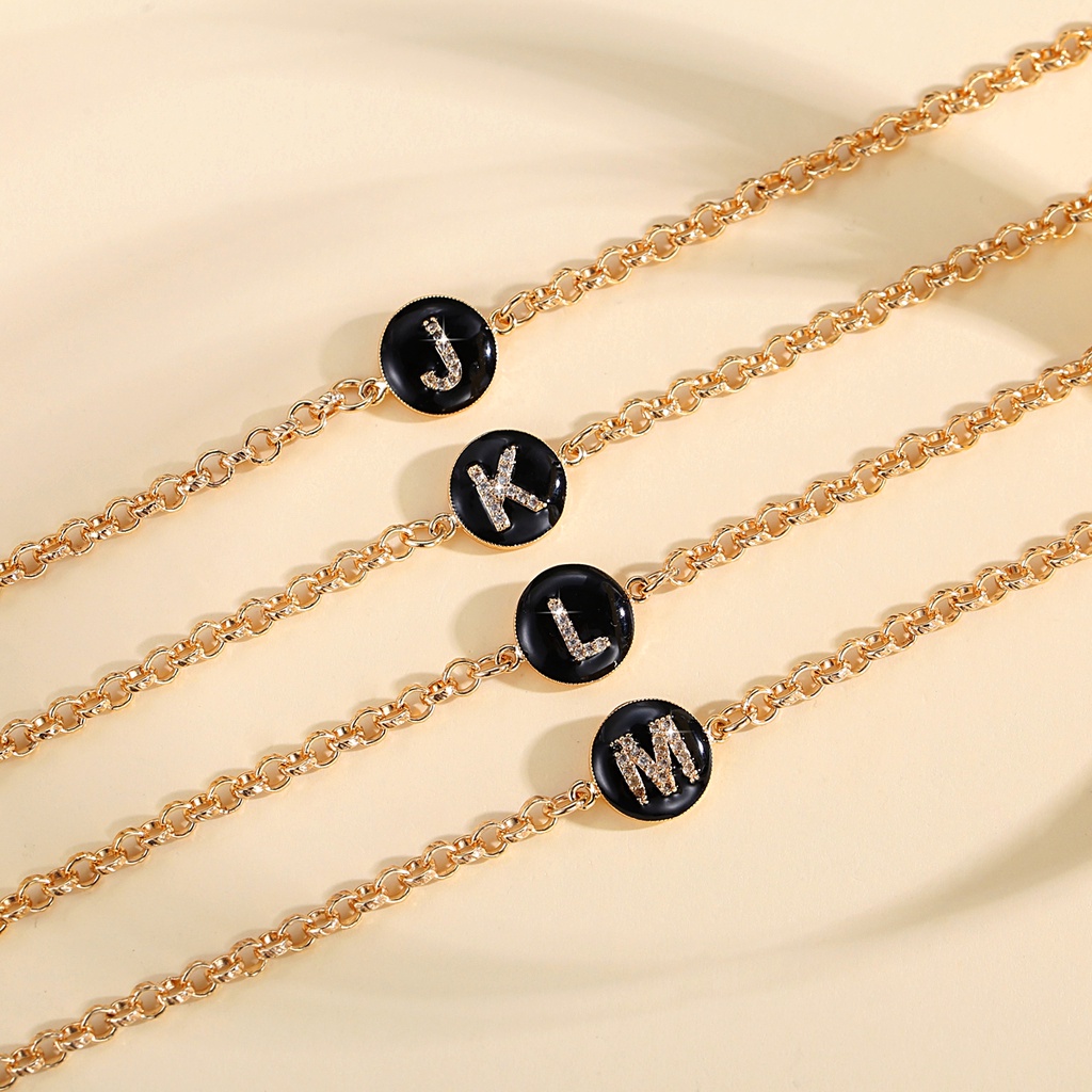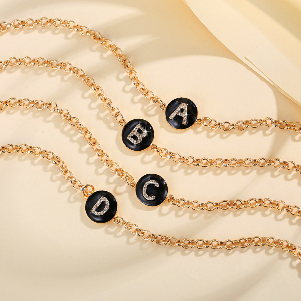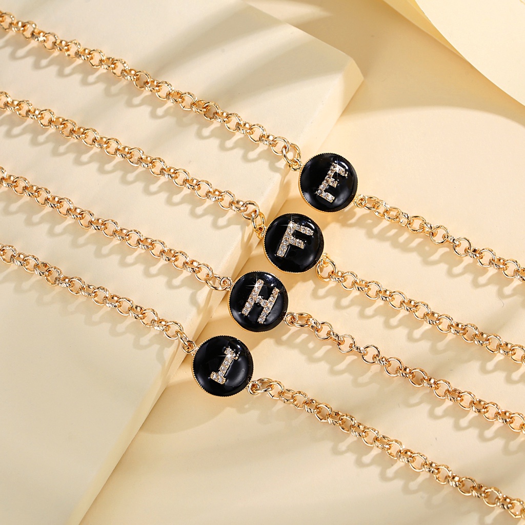 Lanme Jewelry Gelang Titanium Wanita Inisial Huruf Emas Anti Karat Gelang Titanium Huruf Gold Fashion Aksesoris Korea Y552