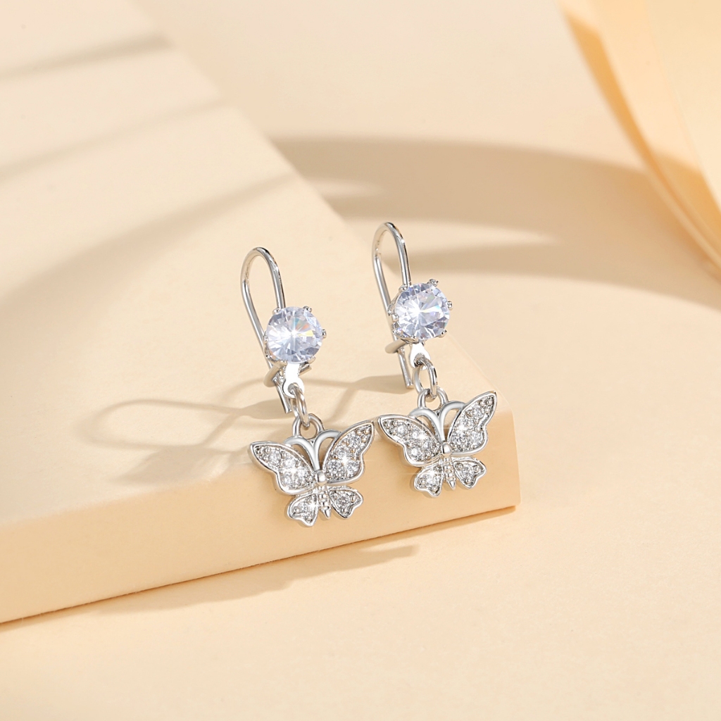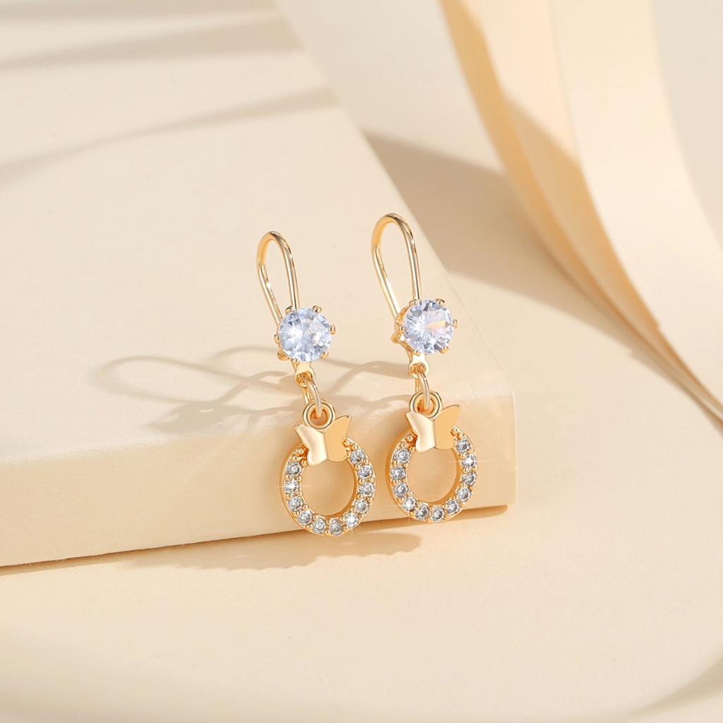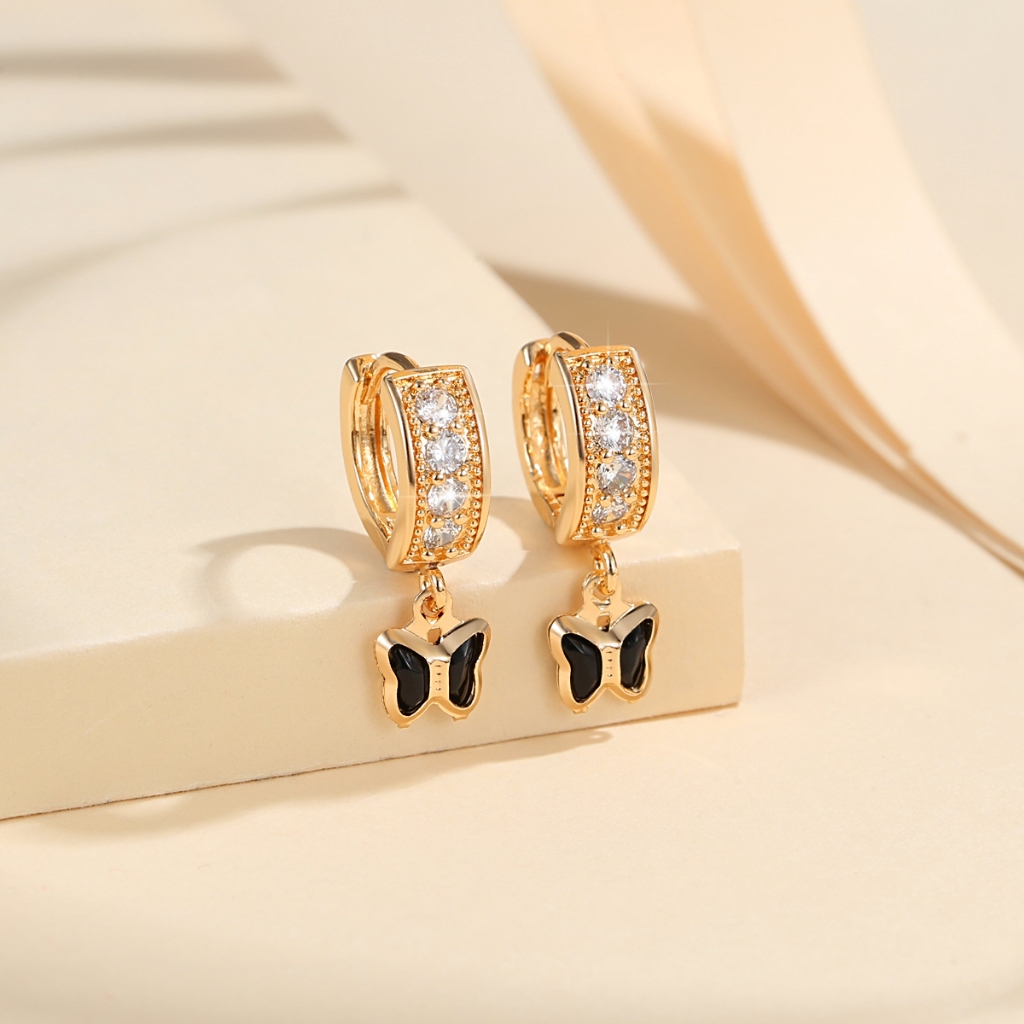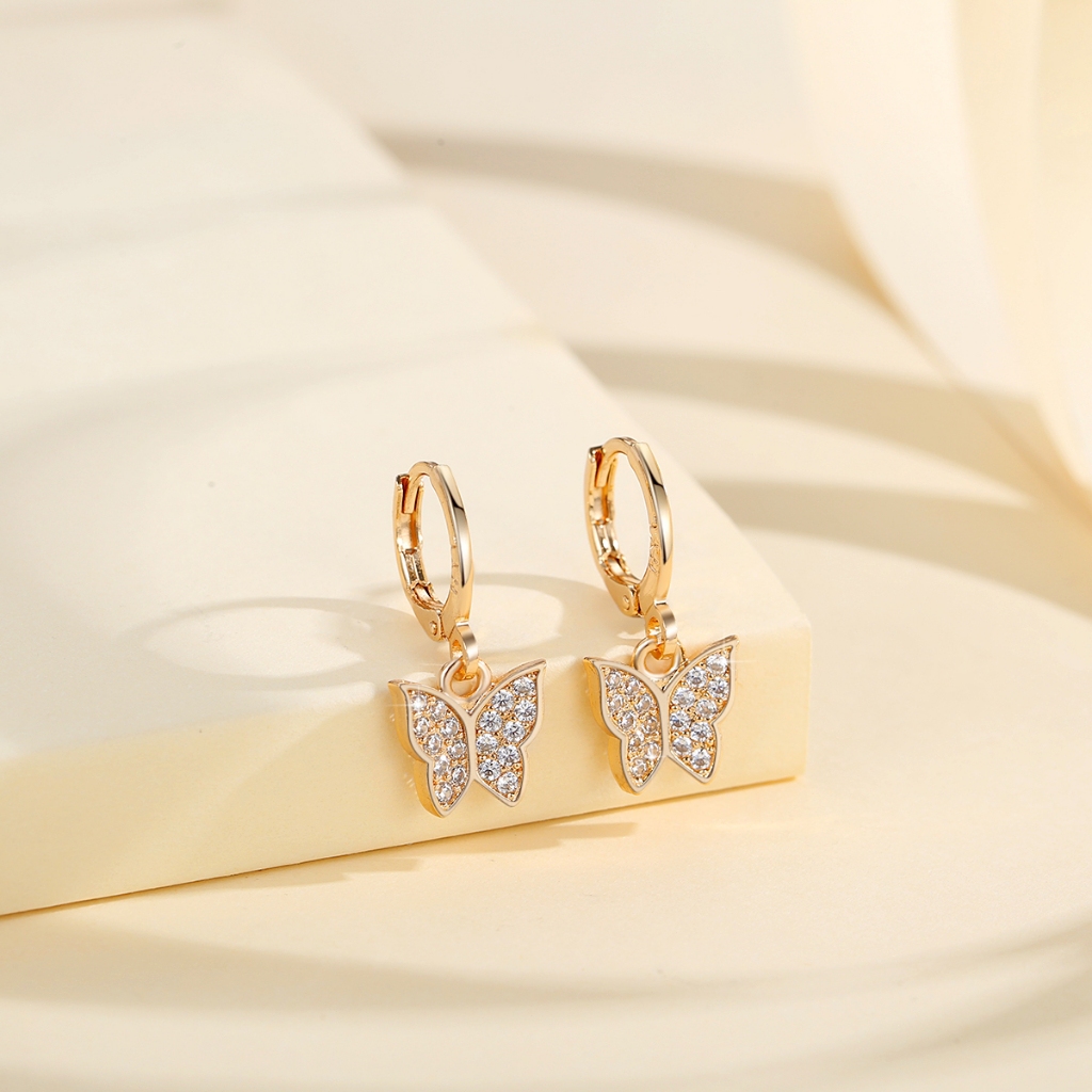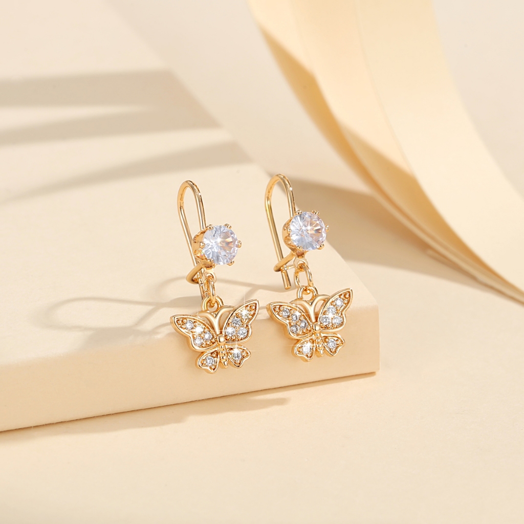 Lanme Jewelry Anting Wanita Titanium Kupu-Kupu Kristal Liontin Anti Karat Korean Emas Aksesoris LM407