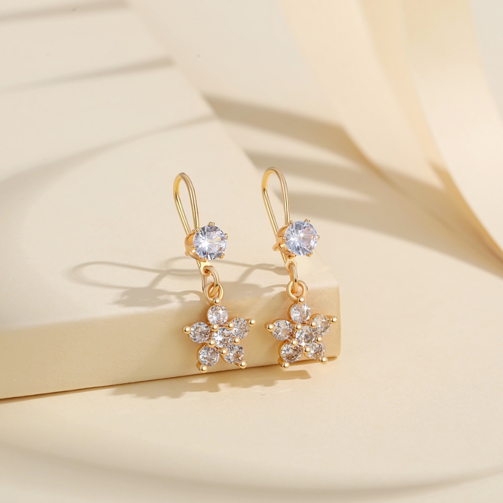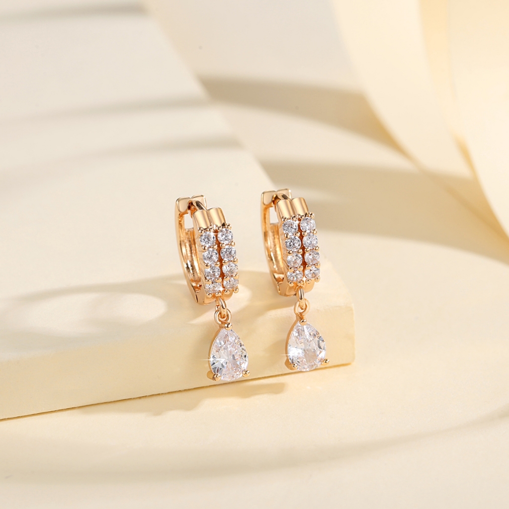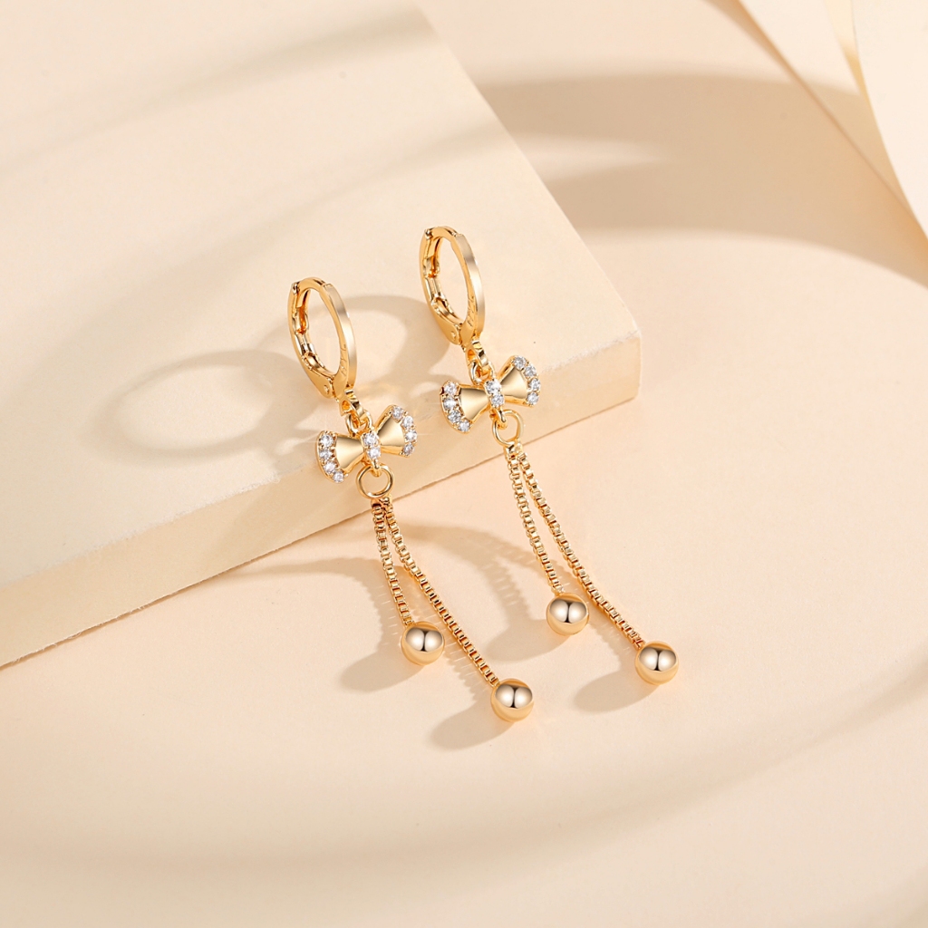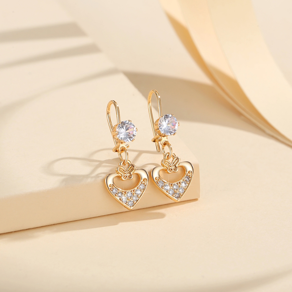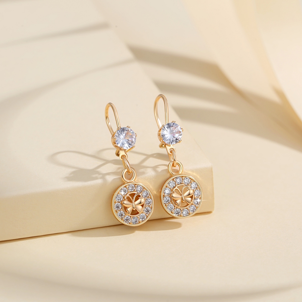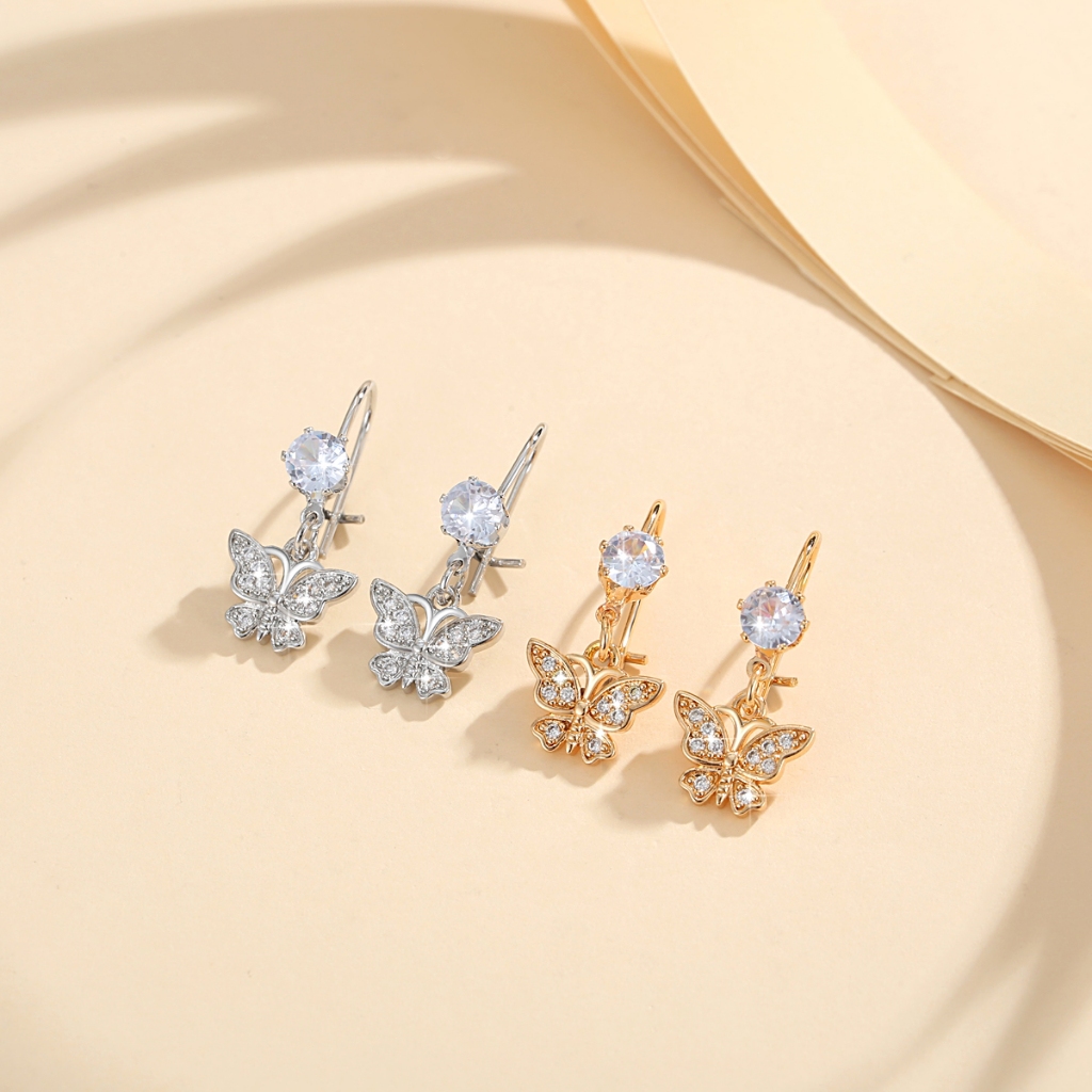 Lanme Jewelry Anting Wanita Titanium Kupu-Kupu Kristal Liontin Anti Karat Korean Emas Aksesoris LM407