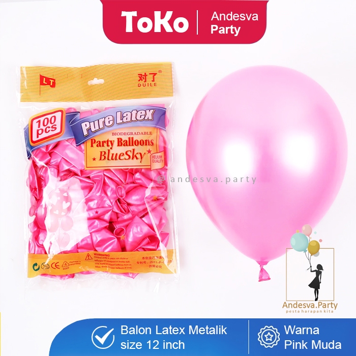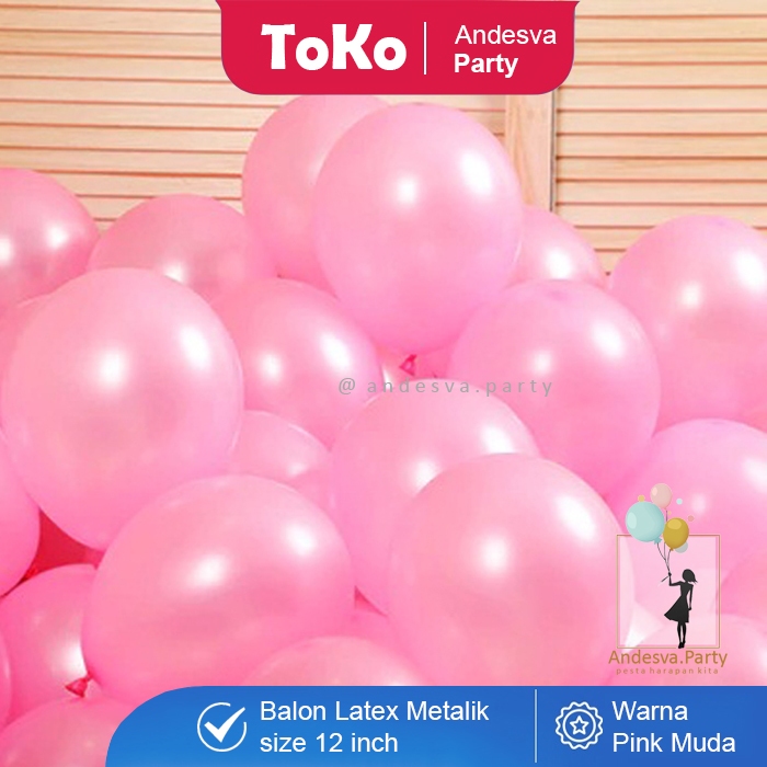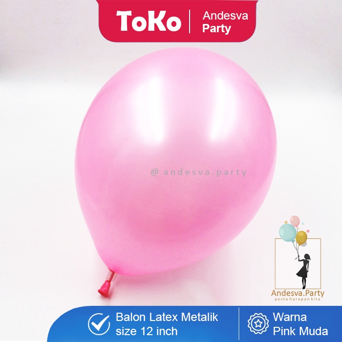 Balon Metalik Pink Muda / Balon Latex Warna Pink Muda / Balon Karet Polos 12 Inch / Balon Dekorasi