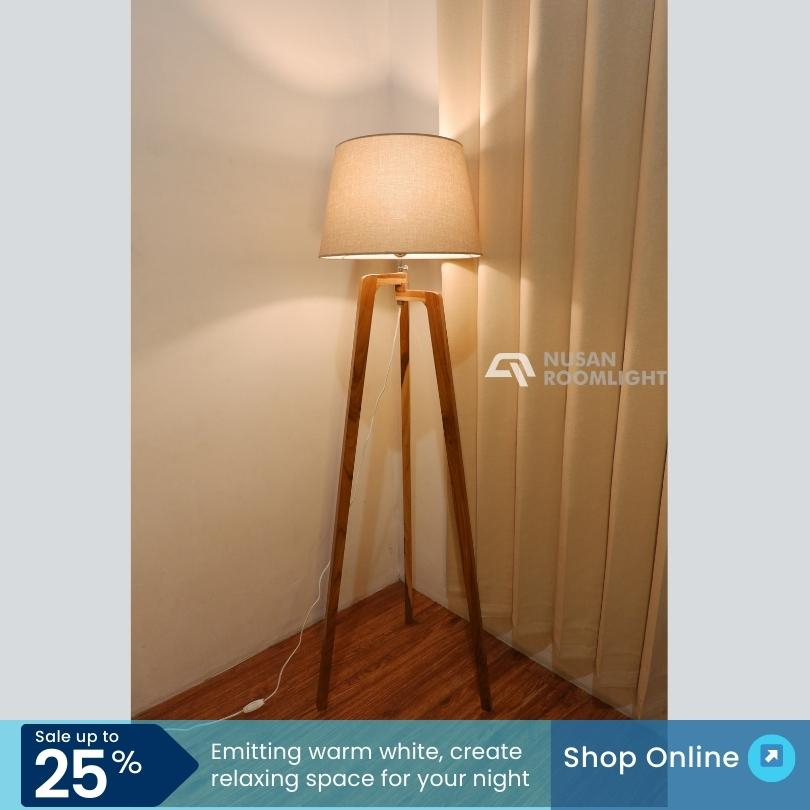 Lampu Lantai Berdiri Standing Sudut Beside Floor Lamp Ruang Tamu Kamar Tidur Lantai Minimalis Aesthetic Nordic Skandinavia Lampshade Lamp Lampu NRL-SFL28 Tinggi 155Cm