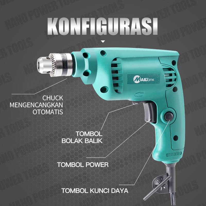 Mailtank SET ELECTRIK DRILL SH30 BOR 10MM DAN GERINDA TANGAN SH05