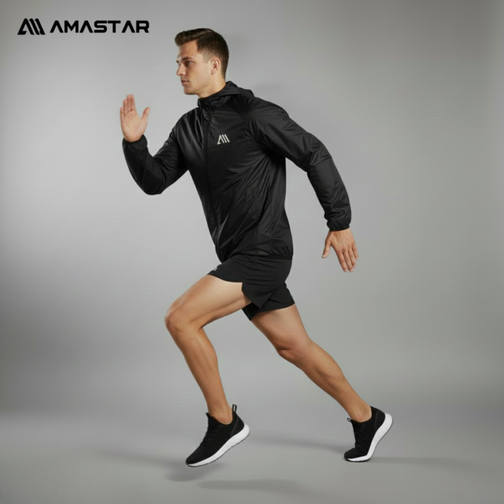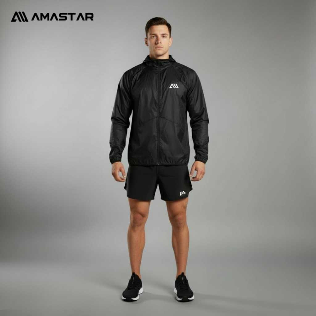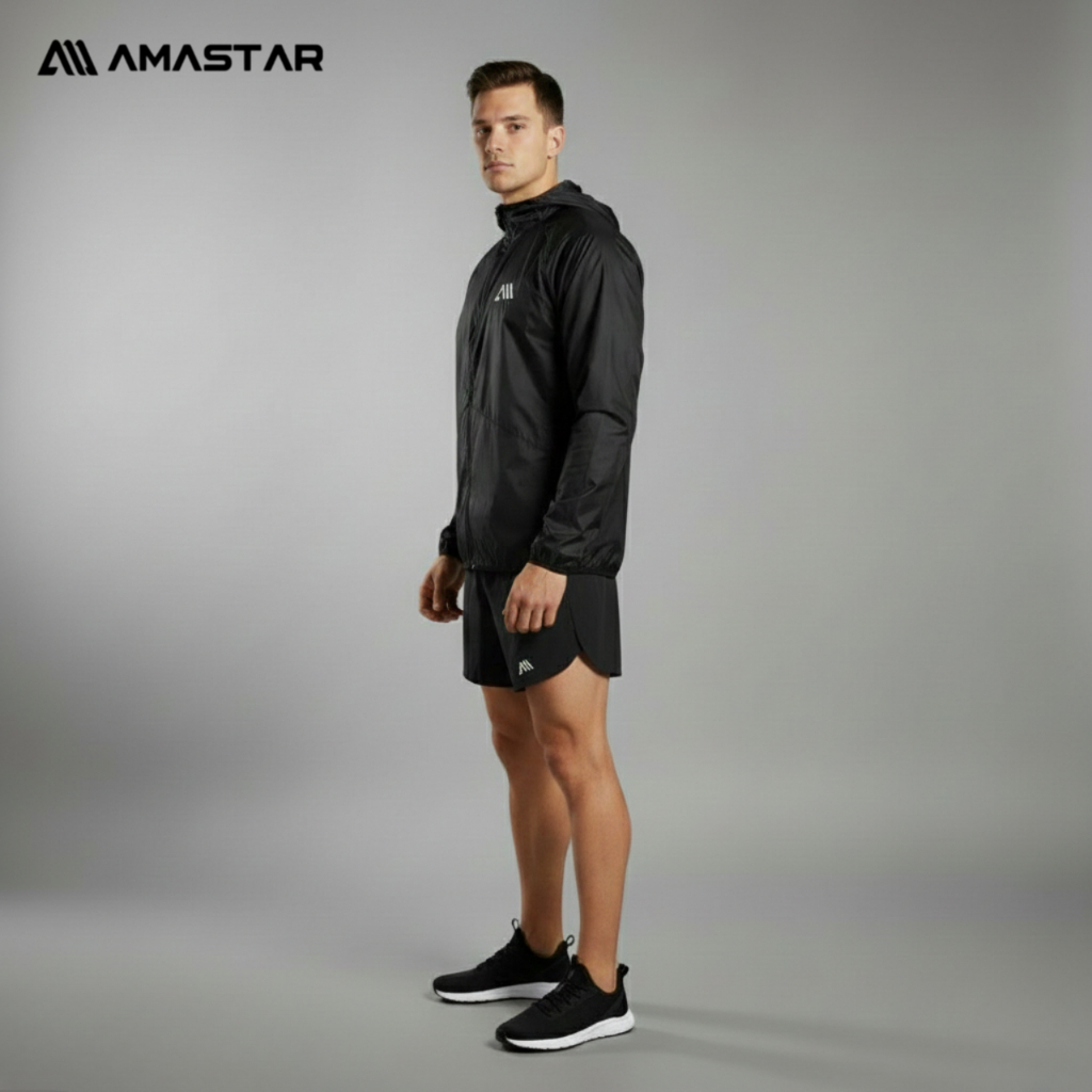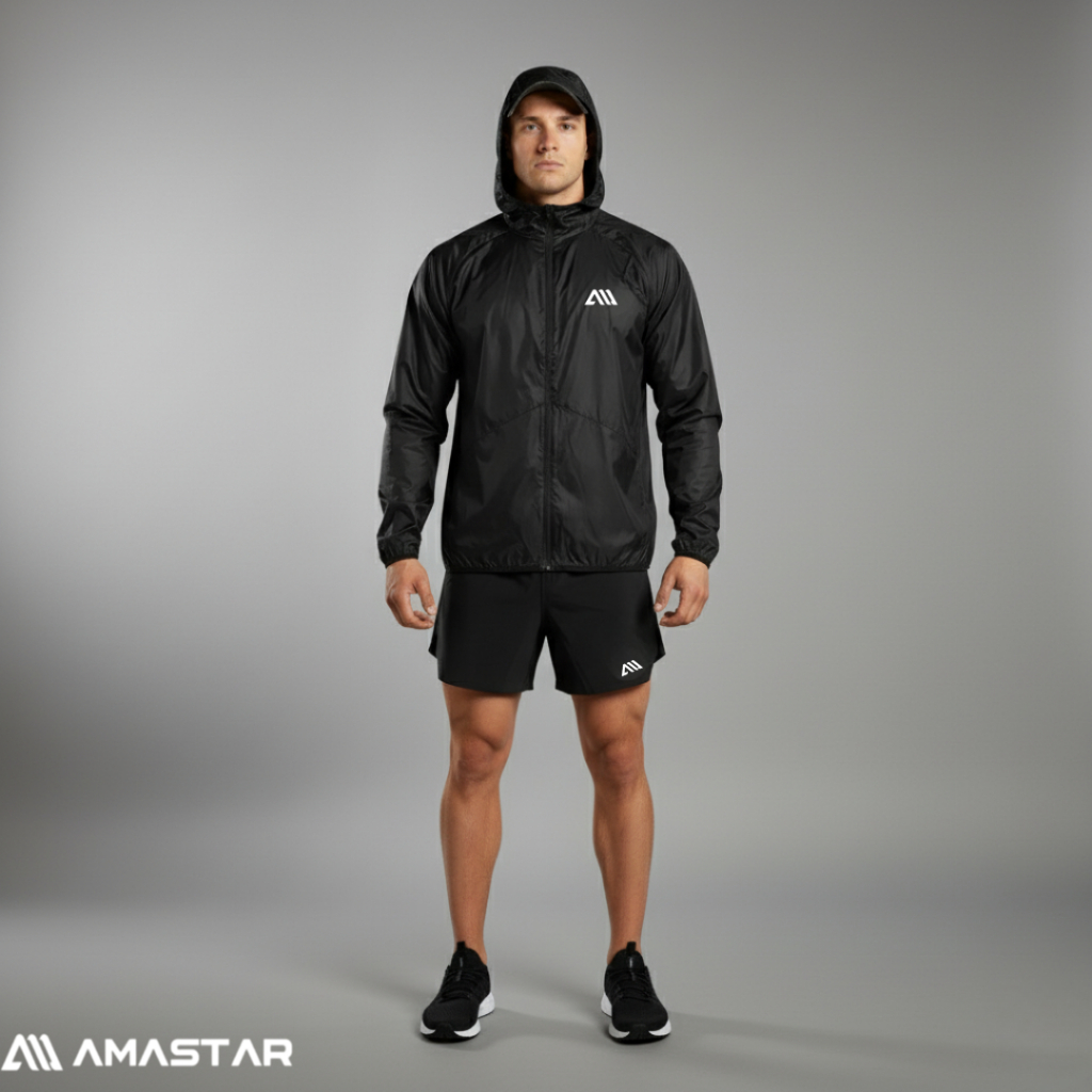 AMASTAR - 2PCS/SET stelan olahraga Running Jaket Parasut Sauna-Celana Pendek Parasut Running