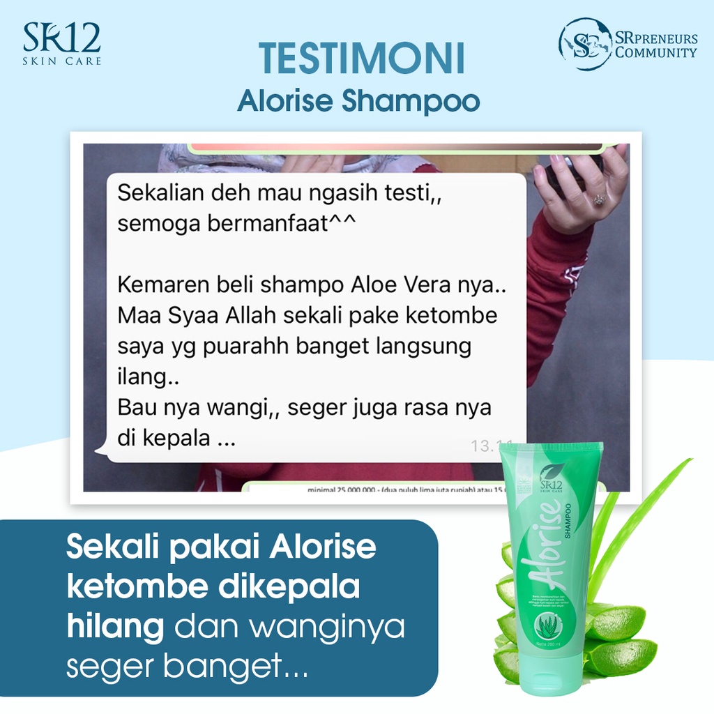 ALORISE SHAMPOO SR12/ SAMPO ALORISE PERAWATAN RAMBUT RONTOK, KERING BERCABANG/ HAIR FALL TREATMENT