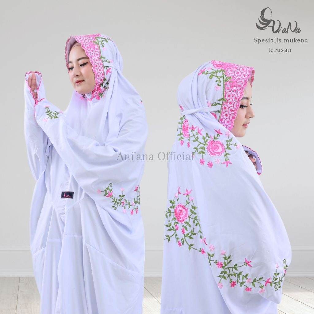 Ani'Ana Official - Mukena Terusan Polino Santri Bordir Bunga Mukenah Lajuran