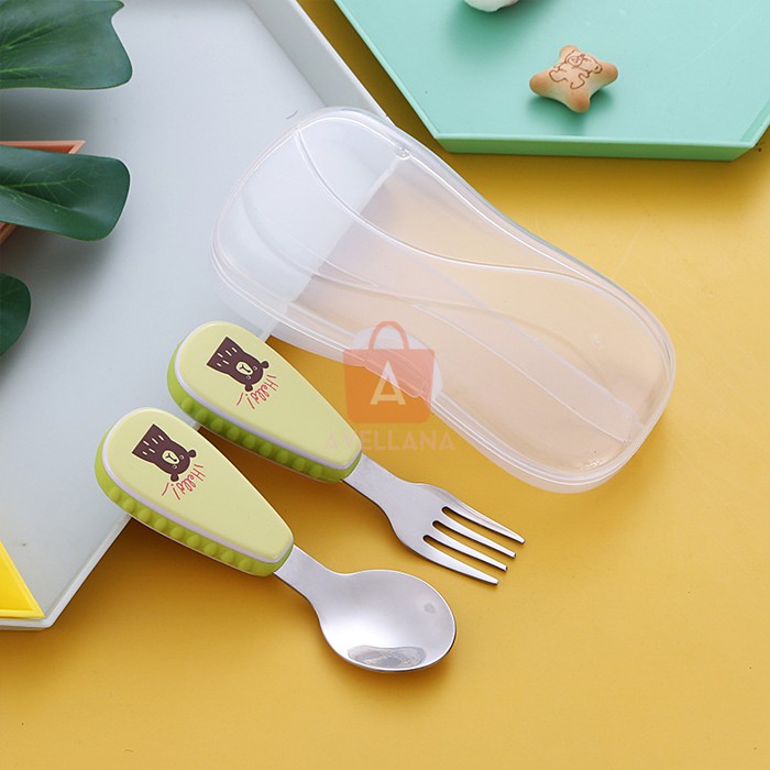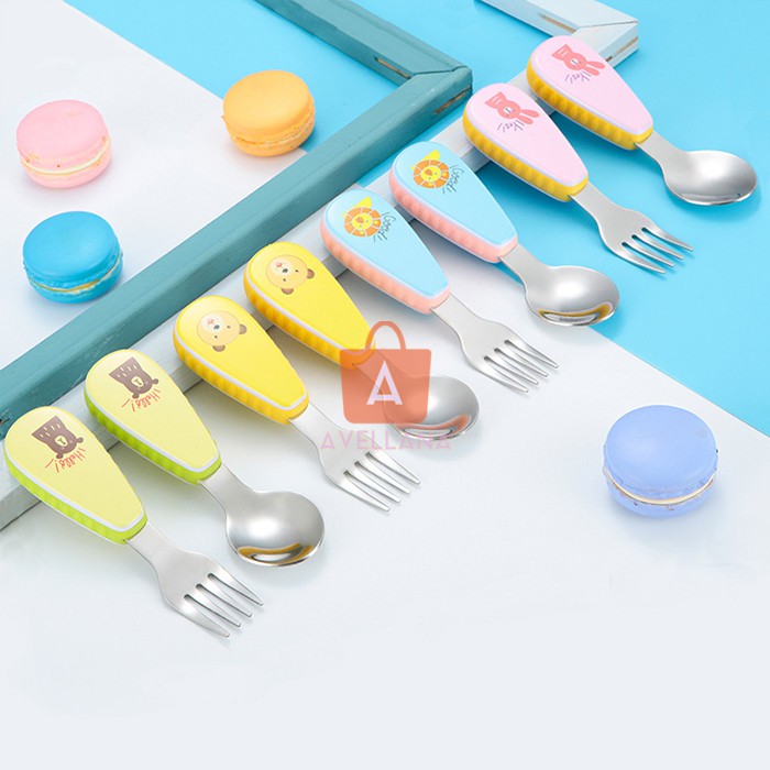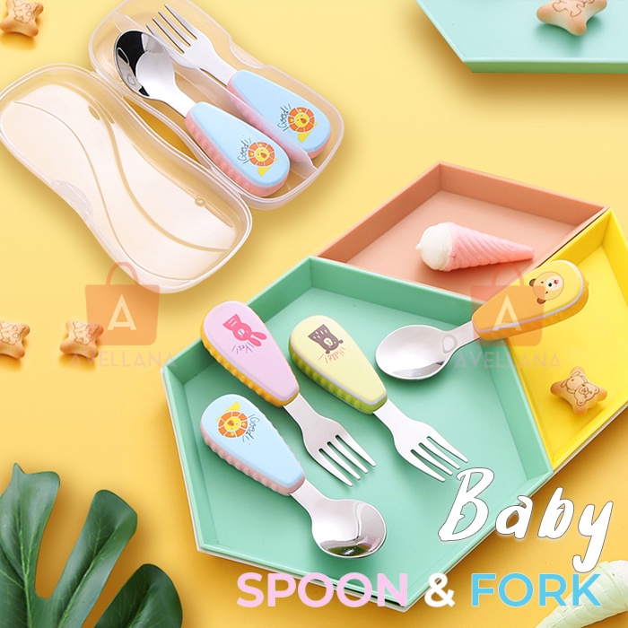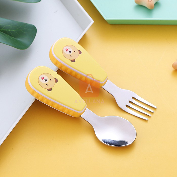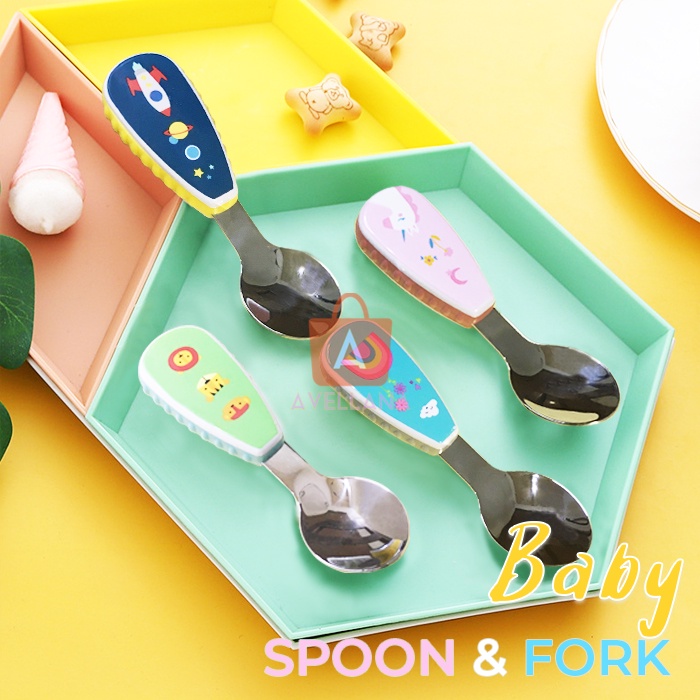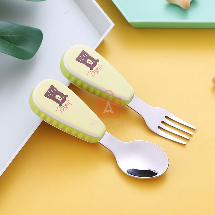 Sendok Garpu Peralatan Makan Bayi Model Kartun / Baby Cutlery Set