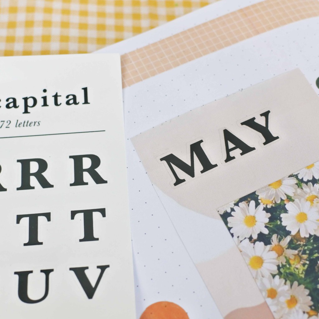 SHINSDAY 72 huruf Capital | 74 Lowercase | 71 Number Transparan Sticker untuk Judul Tanggal Journaling Bujo