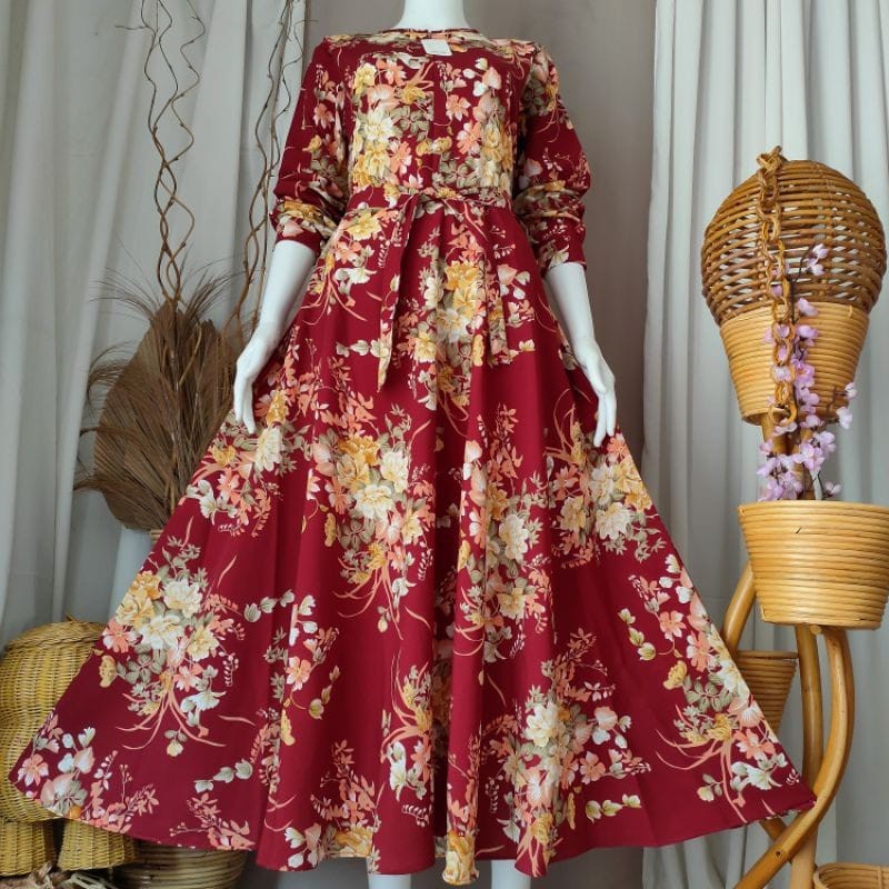 Gamis Maxy Katun Motif Bunga Bangkok Busui // Gamis Katun Jumbo racun shopee